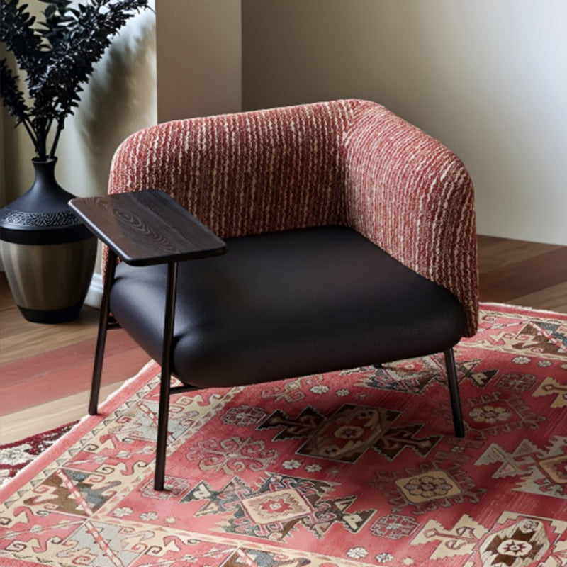Elevate your living room with this highly functional and stylish lounge chair. Its stable, rectangular frame is built with durable solid wood and carbon-steel legs. The supportive seat combines PU leather, linen, and latex cushioning for long-lasting comfort. Featuring a backrest and practical wide armrests for convenient placement of small items, this chair is available in striking Red, Black, and Yellow—a perfect addition of style and stability.
