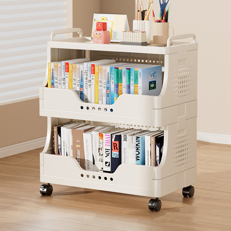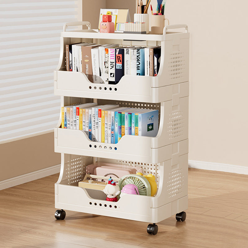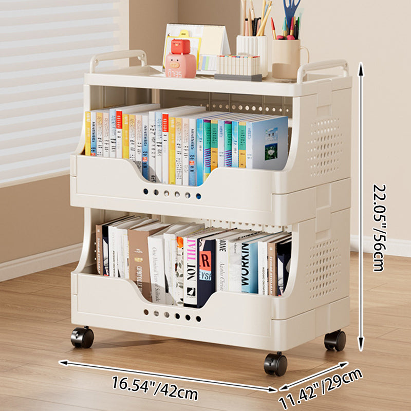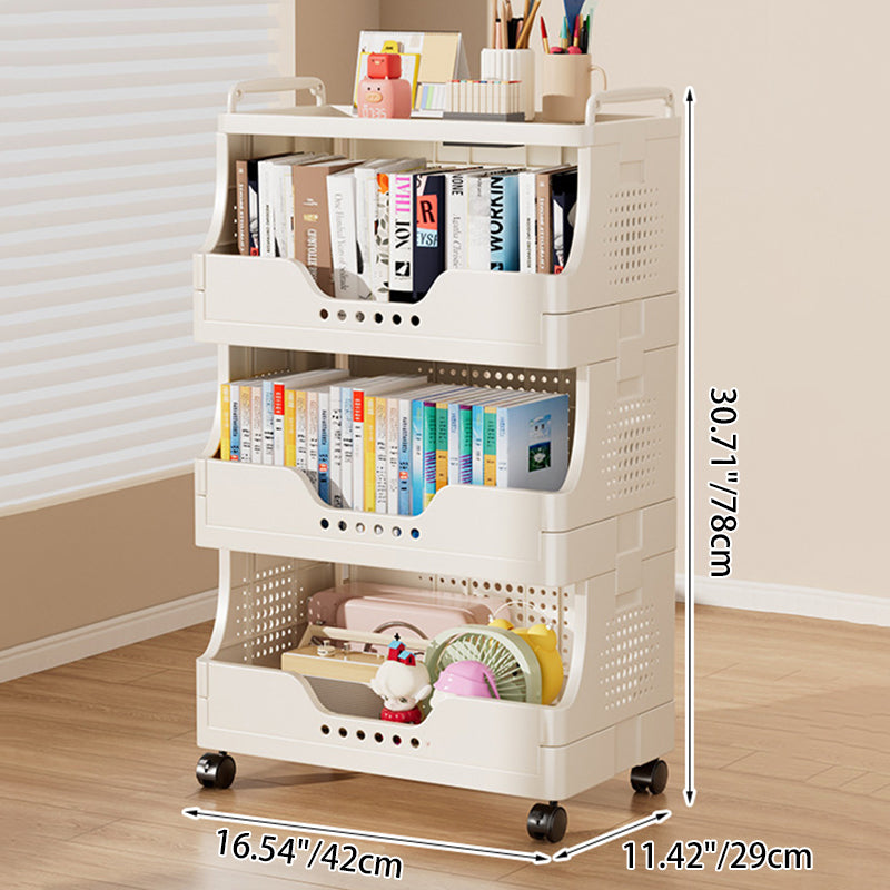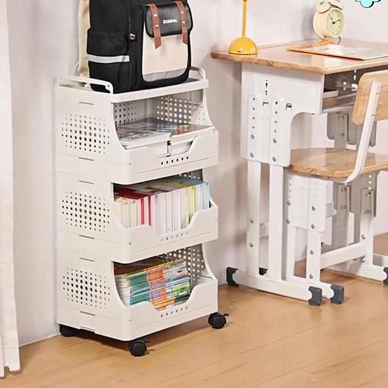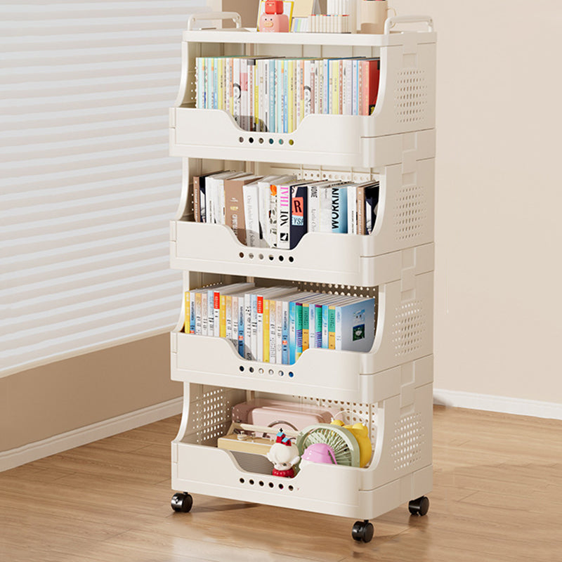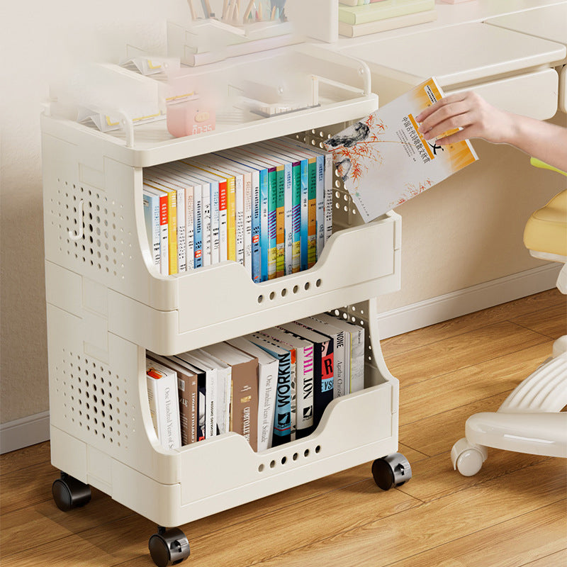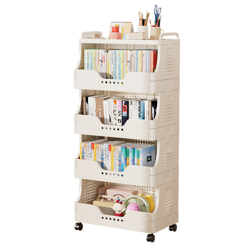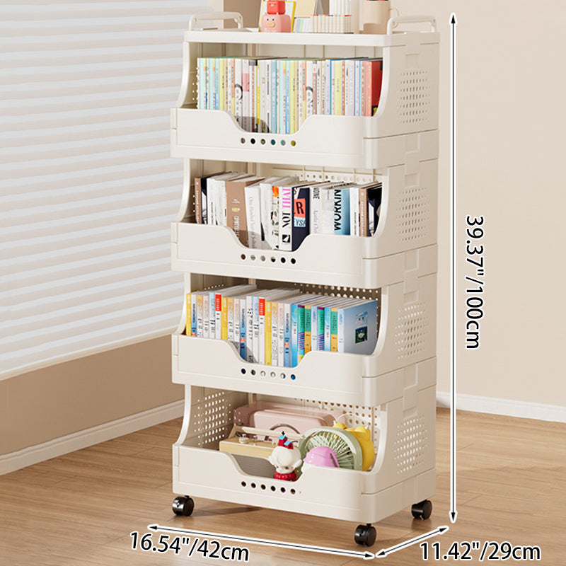 This versatile, movable bookshelf is designed for efficient storage with 3, 4, or 5 layers. Made from durable PP plastic, it offers high flexibility and large capacity for books, bags, and other items. Its sleek white color and trapezoidal design make it a stylish addition to any living room, bedroom, or study. Keep your space organized and clutter-free with this modern storage solution.