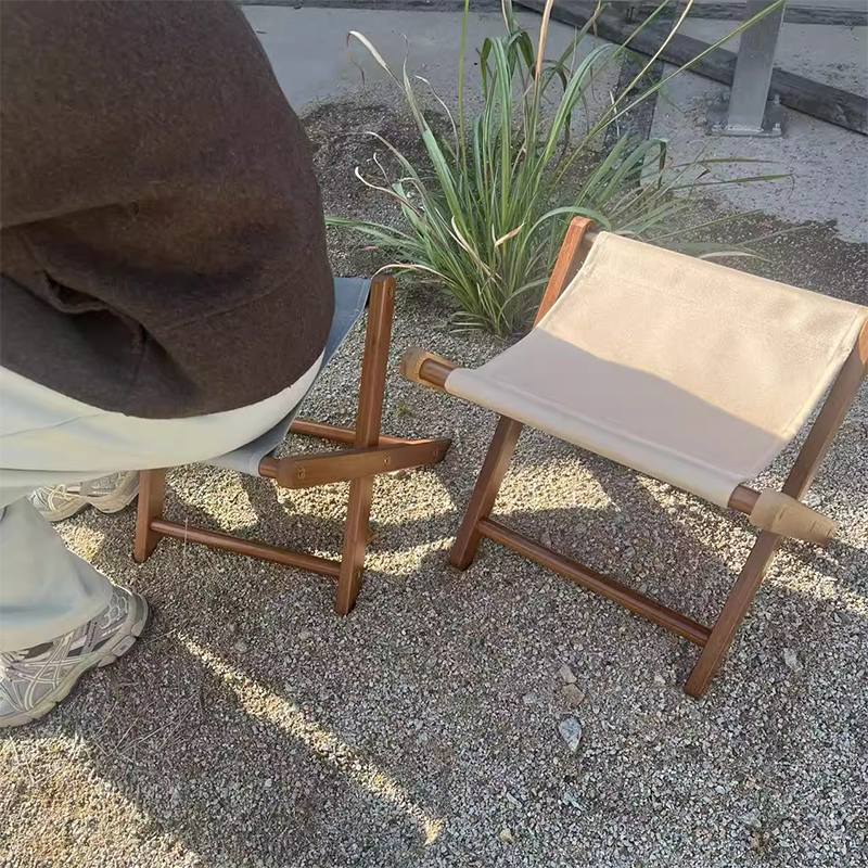 This modern minimalist folding chair features a durable bamboo and MDF frame paired with a comfortable Oxford-cloth seat, available in khaki and gray. The lightweight X-frame design makes it ideal for the living room, garden, and outdoor patio. A versatile folding chair perfect for indoor and outdoor relaxation, offering natural materials and easy portability without sacrificing comfort.