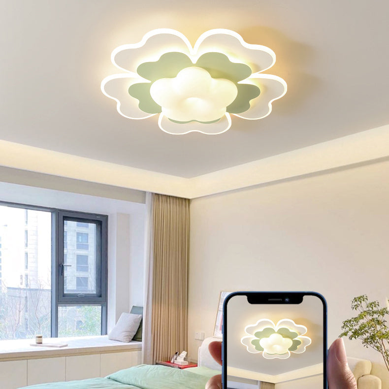 魅力的な花の形にデザインされたこの現代的なフラッシュマウントシーリングライトは、ソフトなグリーンとホワイトのトーンを持つPEと鉄の構造を特徴としています。ブルーライト防止とフリッカーフリーLED技術により均一な照明を提供し、子供部屋やモダンな寝室で温かく穏やかな雰囲気を作り出すのに理想的です。