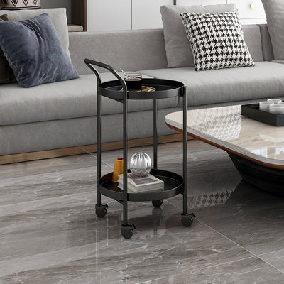 Contemporary Minimalist Round Iron Movable Side Table With Armrest 2/3-Tier For Living Room
