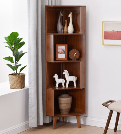 Traditional Vintage Rectangular Moso Bamboo Medium-Density Fiberboard Corner Cabinet 3/4/5-Tier For Living Room