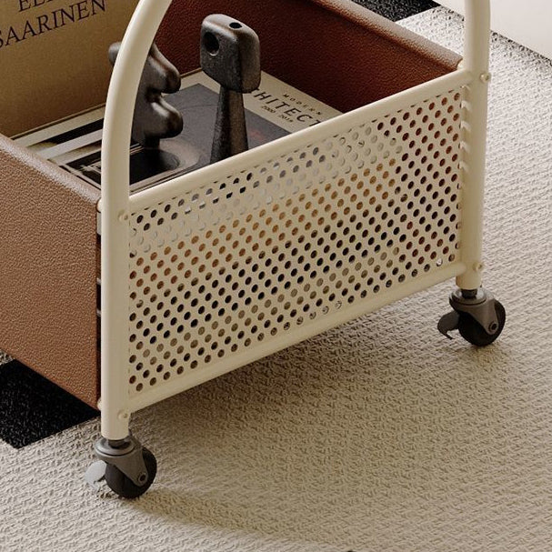 Modern Minimalist Rectangular Tempered Glass Cat Scratch Leather Carbon Steel Movable End Table 2-Tier For Living Room