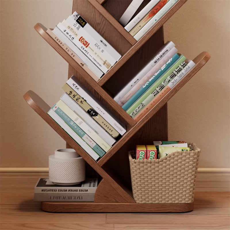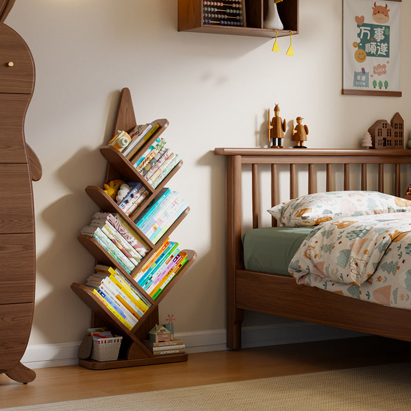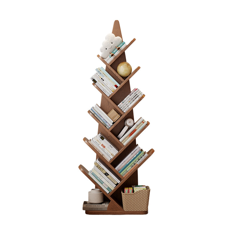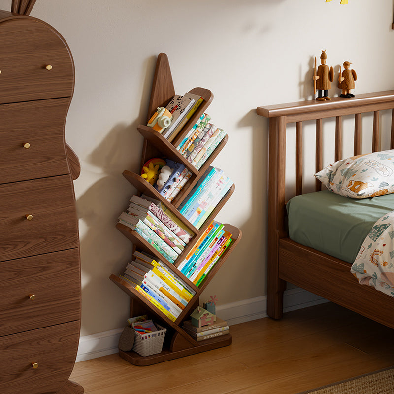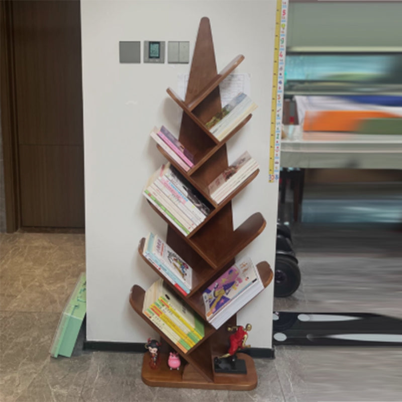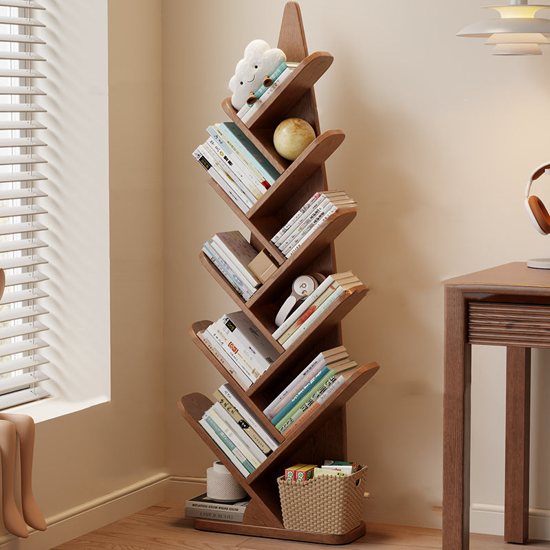 Crafted from durable solid rubberwood in a rich walnut finish, this bamboo-shaped bookshelf features an eye-catching staggered design with 8 or 10 open tiers for organized, easy-access storage. Its slim, floor-standing profile fits perfectly against walls or corners, making it a creative and space-saving bookcase for living rooms, bedrooms, or home offices.