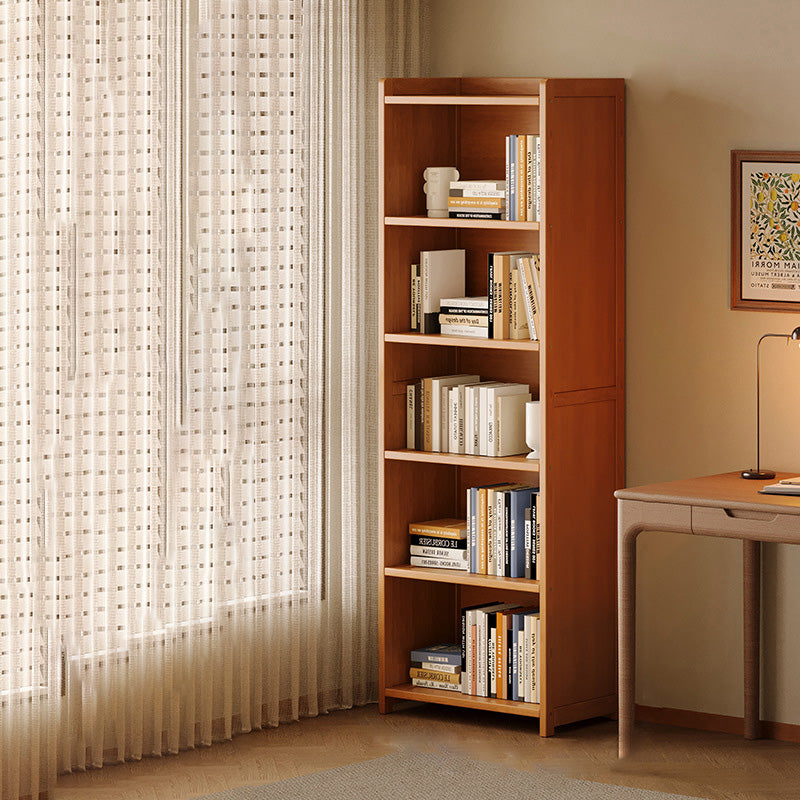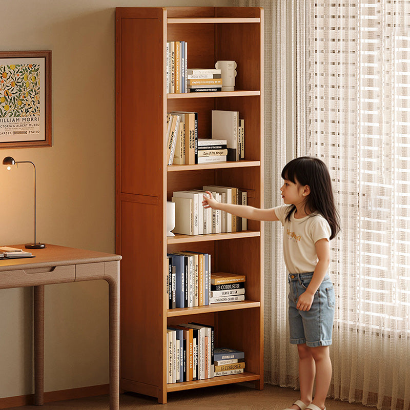 Streamline your home library with this modern minimalist rectangular bookshelf. Expertly built with a sturdy bamboo frame and MDF shelves, it features a serene natural wood finish that complements any decor. Available in 3, 4, 5, or 6 tiers, this unit utilizes eco-friendly paint and durable construction to provide a safe, sustainable home for your library. It is an ideal solution for book storage, collectibles, and everyday organization in living rooms or home offices.