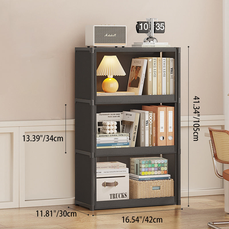 This spacious rectangular bookshelf is available in 3 or 4-tier configurations, featuring transparent PET panels that provide visible, dustproof storage for your collection. Constructed with a blend of durable non-woven fabric and a sturdy carbon steel frame, it ensures a stable and reliable structure for long-term use. Offered in classic white or sleek black, this versatile unit is the ideal organizational solution for modern living rooms, kids rooms, or student study spaces looking to maximize functionality with a contemporary look.