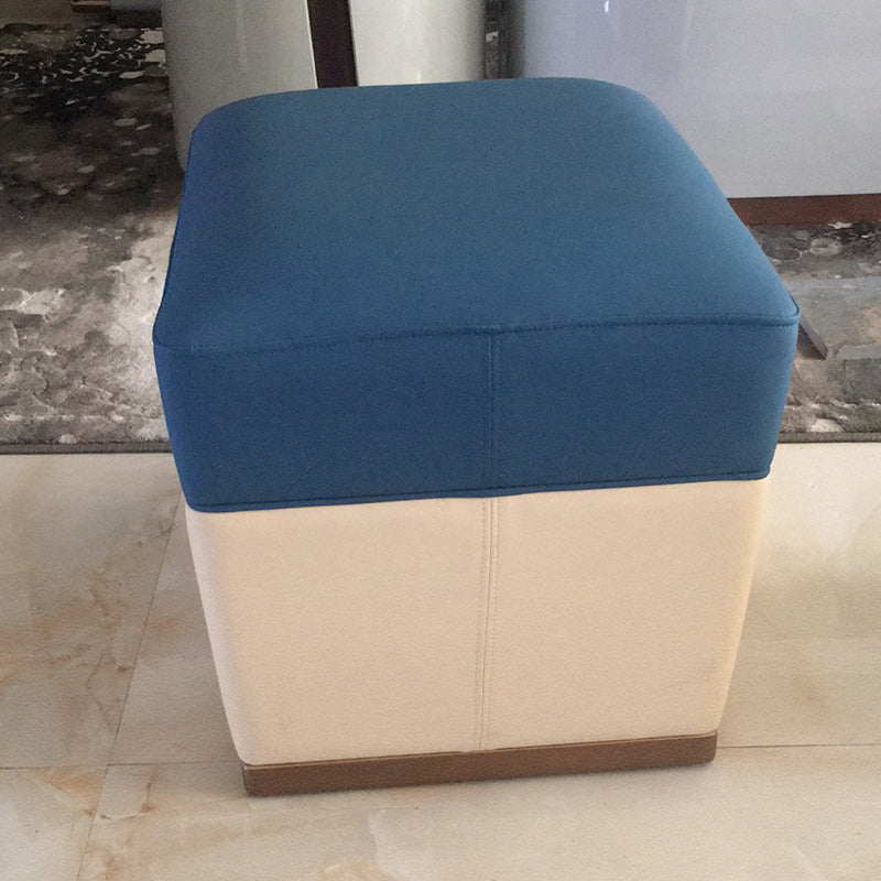 This shoe changing stool features a modern rectangular upholstered stool design, perfect for hallway or entryway use. Finished in blue and beige, it offers a comfortable cushioned seat that provides supportive and stylish seating for everyday shoe changing.