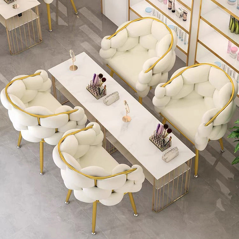 Contemporary Creative Curved Bubble Velvet Carbon Steel Vanity Stool Backrest Armrest For Bedroom