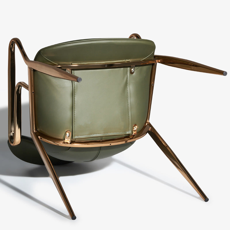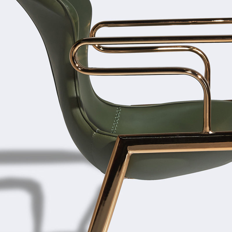 Contemporary Luxury Curved Saddle Leather Carbon Steel Dining Chair Backrest Armrest For Dining Room