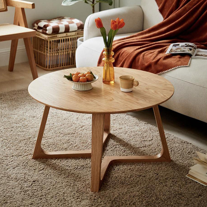 Contemporary Scandinavian Solid Wood Round Straight-Edge Coffee Table With 1-Tier For Living Room