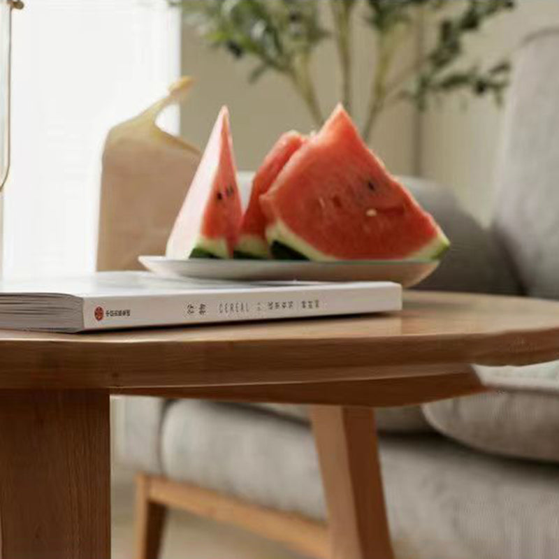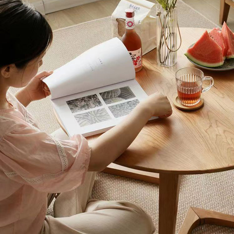 Crafted from premium solid wood in natural and white finishes, this Scandinavian coffee table features a smooth round shape with soft edges and a single-tier design. Its sturdy build and ideal height make it perfect for cozy living rooms or tatami-style seating areas.