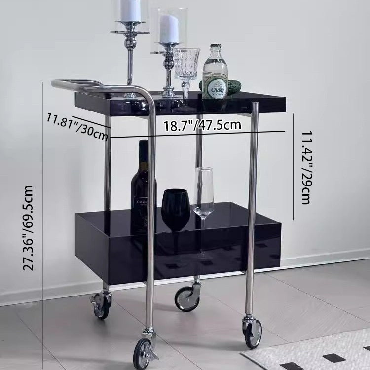 このモダンな2段アクリルと金属のサイドテーブルは、スリークな長方形のデザインとスムーズに動く車輪が特徴で、移動が簡単です。エレガントなグレーとアンバーの色調で利用可能で、スタイリッシュな収納や機能的なアクセントピースを必要とするコンパクトなスペースに最適です。