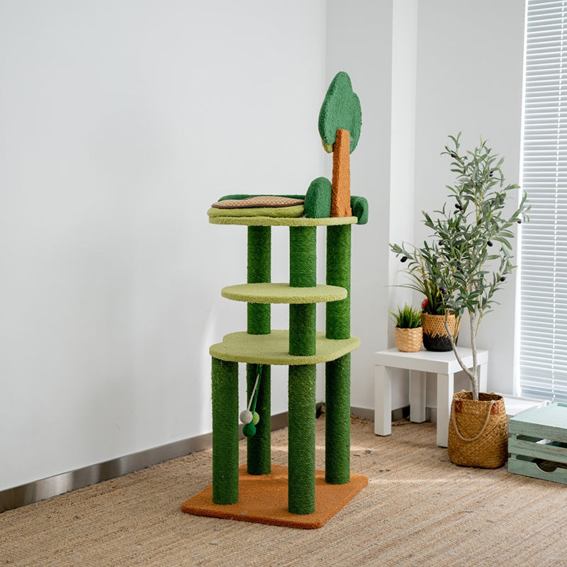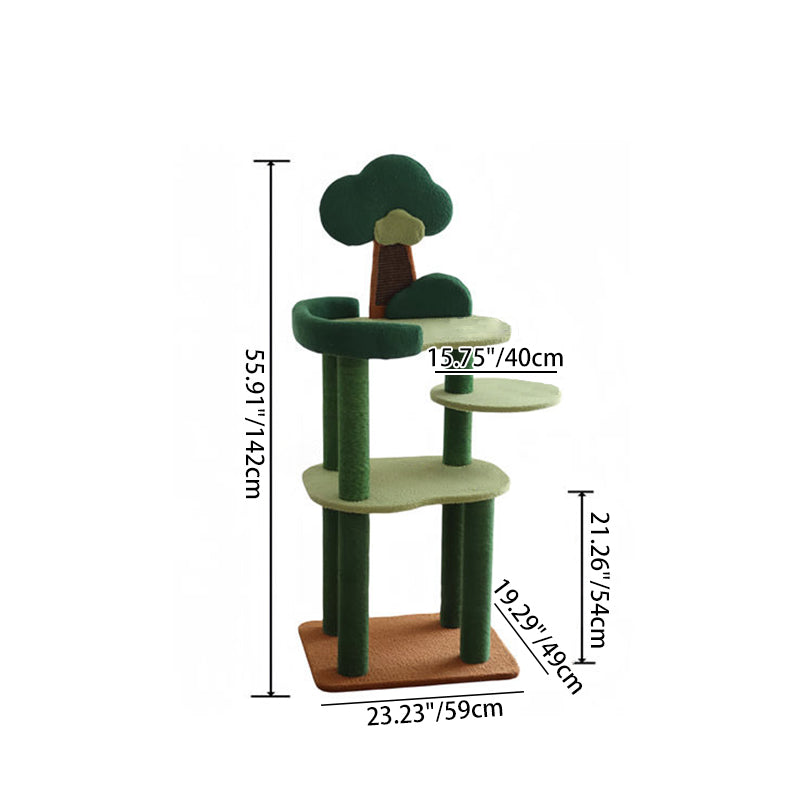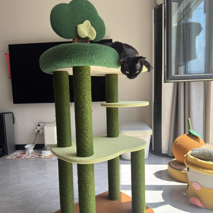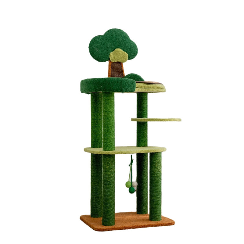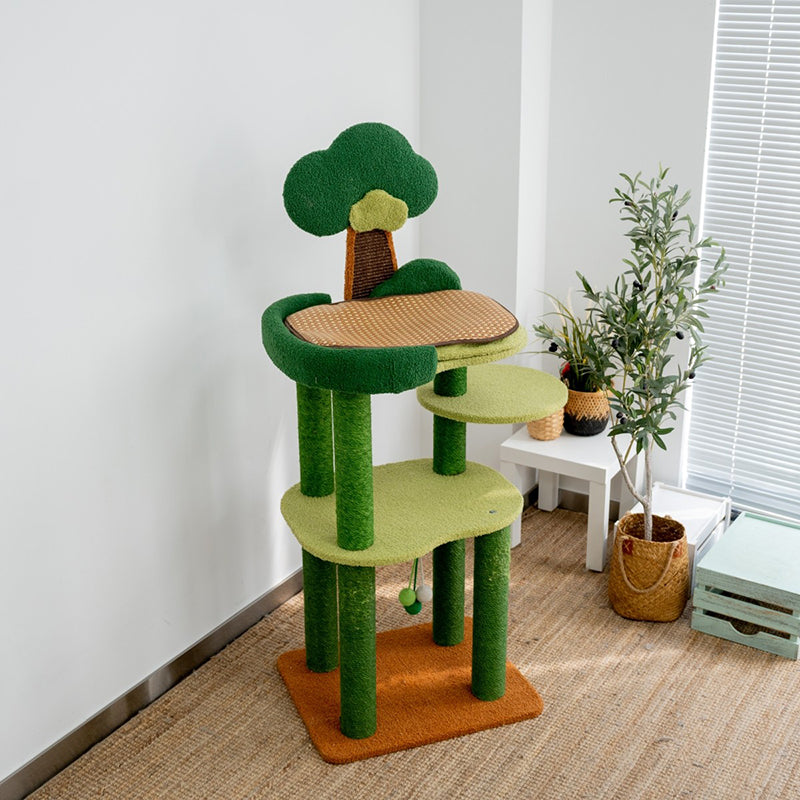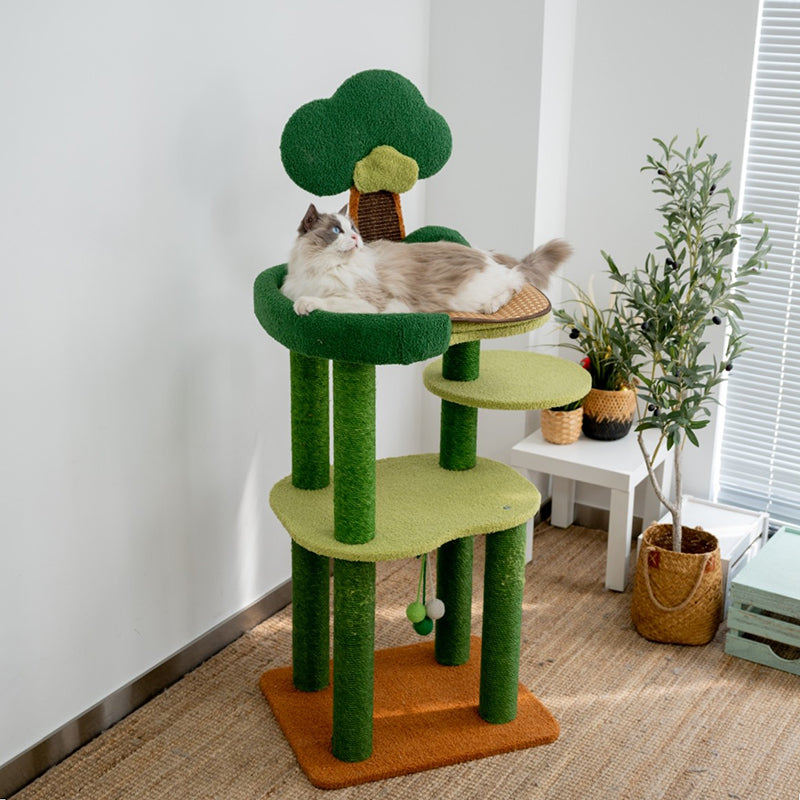 Bring the invigorating energy of the great outdoors into your home with The Forest Canopy, a majestic 4-tier tree-style cat tower designed for the ultimate climbing adventure. Capturing the essence of a woodland retreat, this tower features a lush Jungle Green and Earthy Brown palette that serves as a vibrant "Biophilic" centerpiece for your living room or bedroom. The staggered four-story design mimics the natural verticality of a real forest, providing an expansive playground for jumping, exploring, and surveying. Perfect for modern "Jungalow" or "Boho-Chic" interiors, this tree transforms your cat’s daily routine into a high-altitude wilderness expedition.