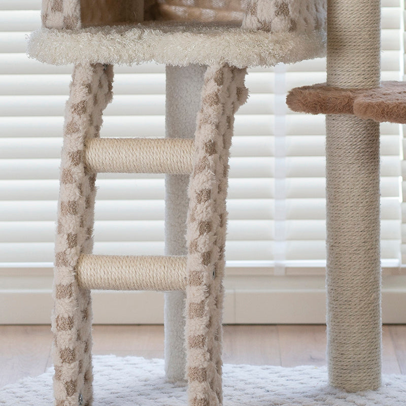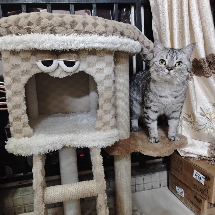 Crafted for long-lasting durability, this furniture-grade cat tree is built on a reinforced particle board foundation and upholstered in high-pile, therapeutic plush fabric. To satisfy your cat's primal urge to scratch, the structural pillars are wrapped in natural industrial-strength sisal rope, effectively diverting claws from your designer upholstery. The upper observation deck offers a spacious, high-walled perch, giving your "Big Cat" the perfect vantage point to survey their kingdom. This is the premier choice for pet parents seeking heavy-duty cat trees for large cats, modern cat condos with scratching posts, space-saving apartment towers, and aesthetic wooden pet furniture.