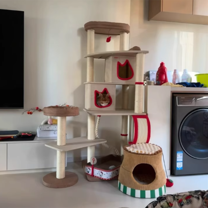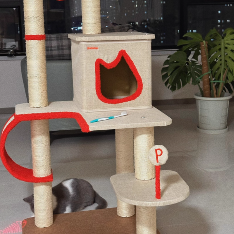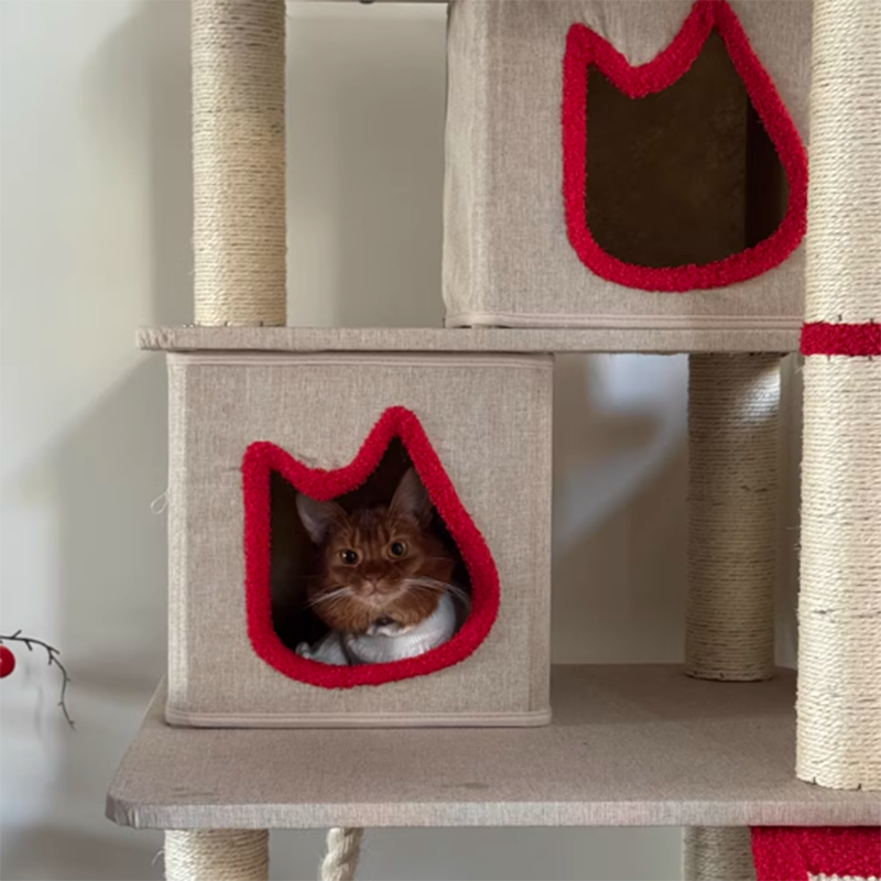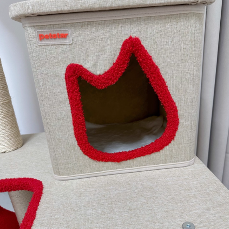 Engineered with "Multi-Cat Dynamics" in mind, the Ruby Peak is a powerhouse of stability and function. The reinforced modular frame supports a total weight of 20 kg (44 lbs), making it the perfect playground for households with multiple cats (ideal for individual cats under 10 kg). Each level is strategically designed to offer a "3-in-1" experience: high-altitude perches for observation, rugged sisal-wrapped zones for healthy scratching, and velvety-soft platforms for deep recovery sleep. This is the premier choice for shoppers seeking sturdy multi-level cat towers, space-saving square cat trees, bold red and white pet furniture, and durable scratching posts for active multi-cat homes.