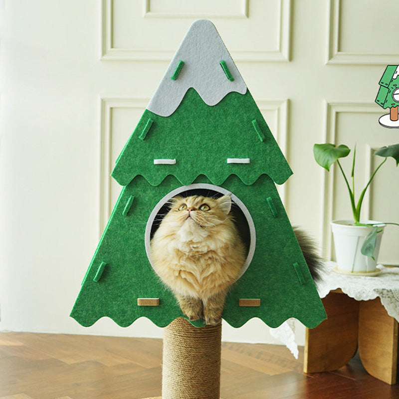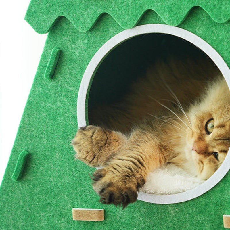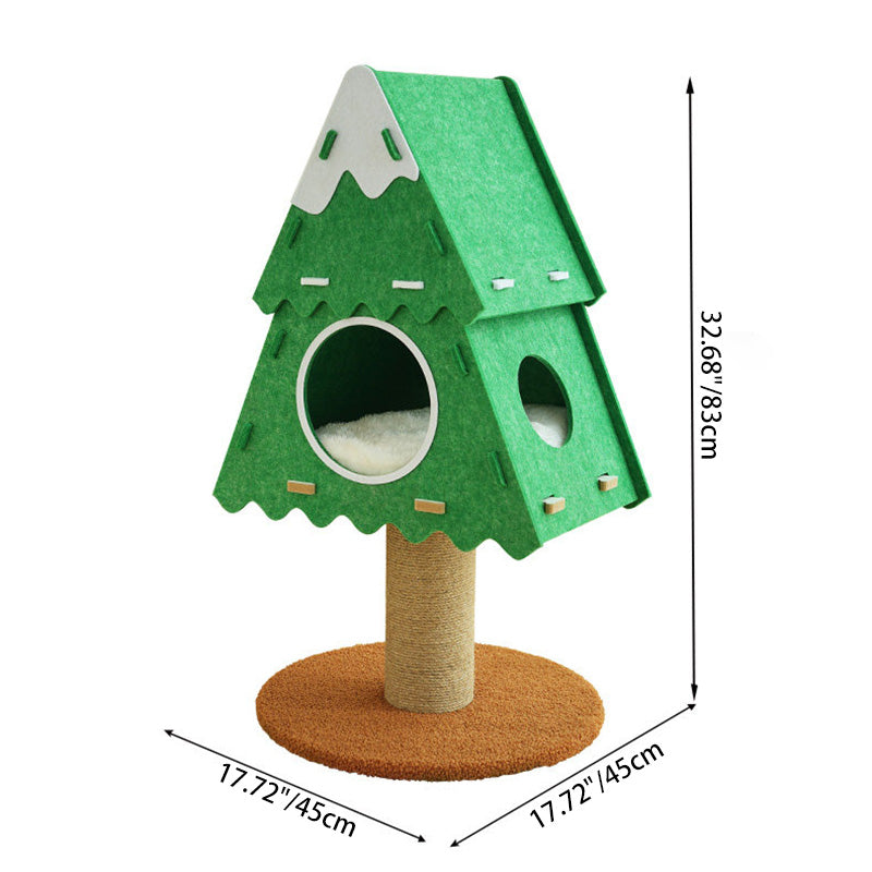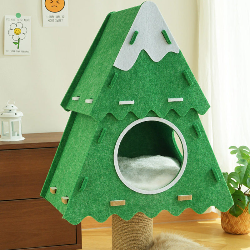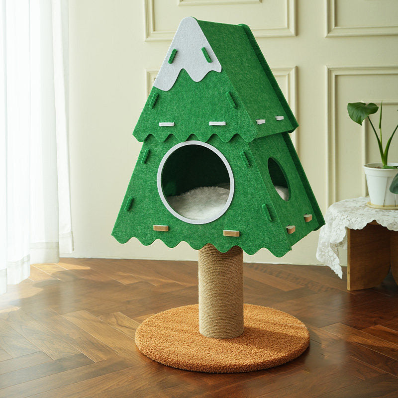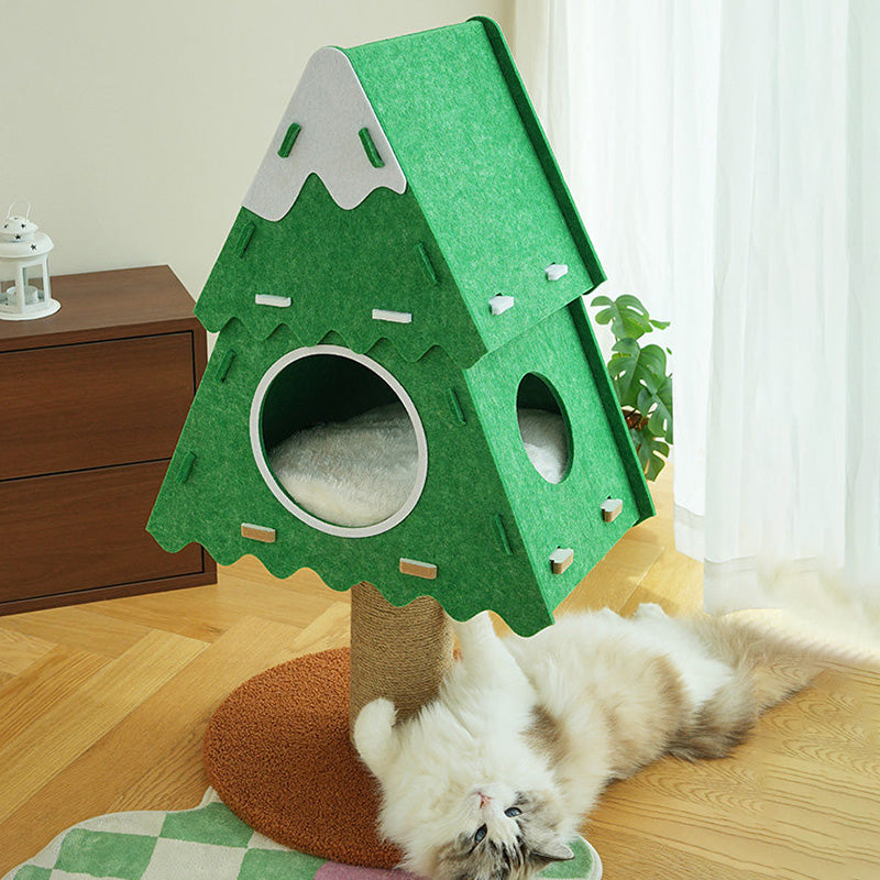 Bring the magic of the holidays to your pet’s daily routine with the Evergreen Grotto, a festive, Christmas-inspired activity center that doubles as a year-round "Biophilic" masterpiece. This 3-tier triangular tower features a sculptural silhouette in Forest Green and Earthy Brown, turning a standard pet utility into a playful piece of "Cottagecore" decor. The architecture includes a secluded ground-floor "Hideaway" condo that provides an anxiety-reducing, den-like atmosphere, topped with graduated climbing steps that lead to a high-altitude observation perch. It is the perfect seasonal accent that remains a stylish, functional sanctuary for your living room or bedroom long after the holidays have passed.