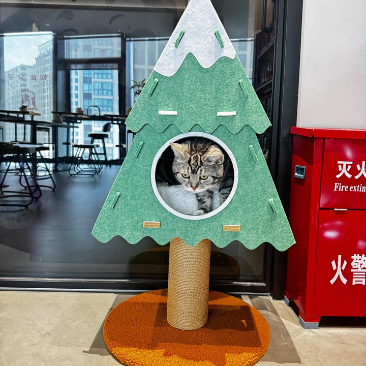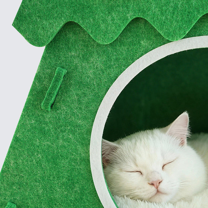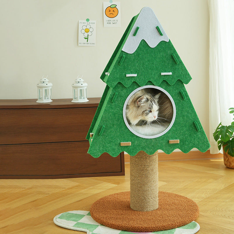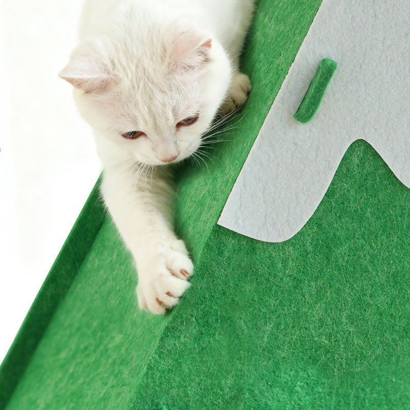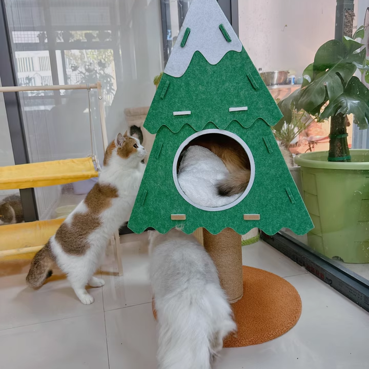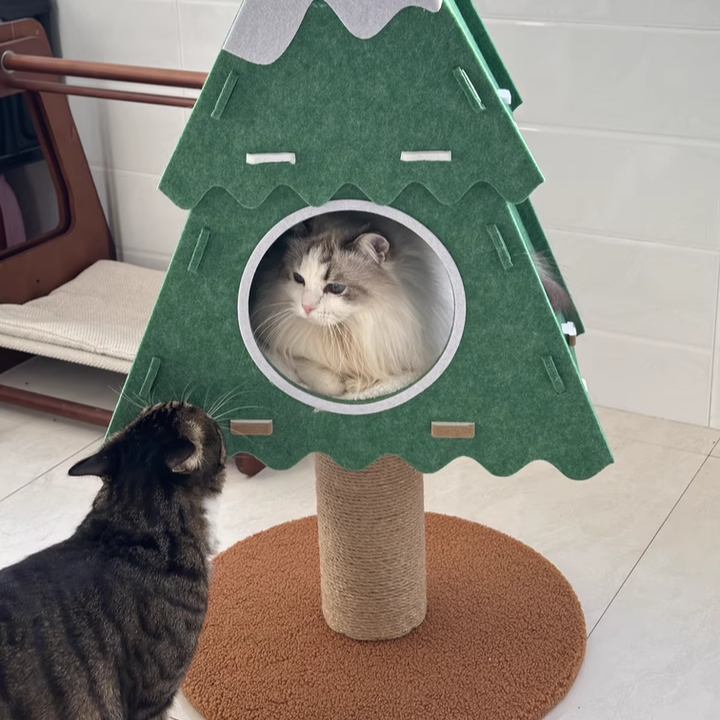 Bring the magic of the holidays to your pet’s daily routine with the Evergreen Grotto, a festive, Christmas-inspired activity center that doubles as a year-round "Biophilic" masterpiece. This 3-tier triangular tower features a sculptural silhouette in Forest Green and Earthy Brown, turning a standard pet utility into a playful piece of "Cottagecore" decor. The architecture includes a secluded ground-floor "Hideaway" condo that provides an anxiety-reducing, den-like atmosphere, topped with graduated climbing steps that lead to a high-altitude observation perch. It is the perfect seasonal accent that remains a stylish, functional sanctuary for your living room or bedroom long after the holidays have passed.