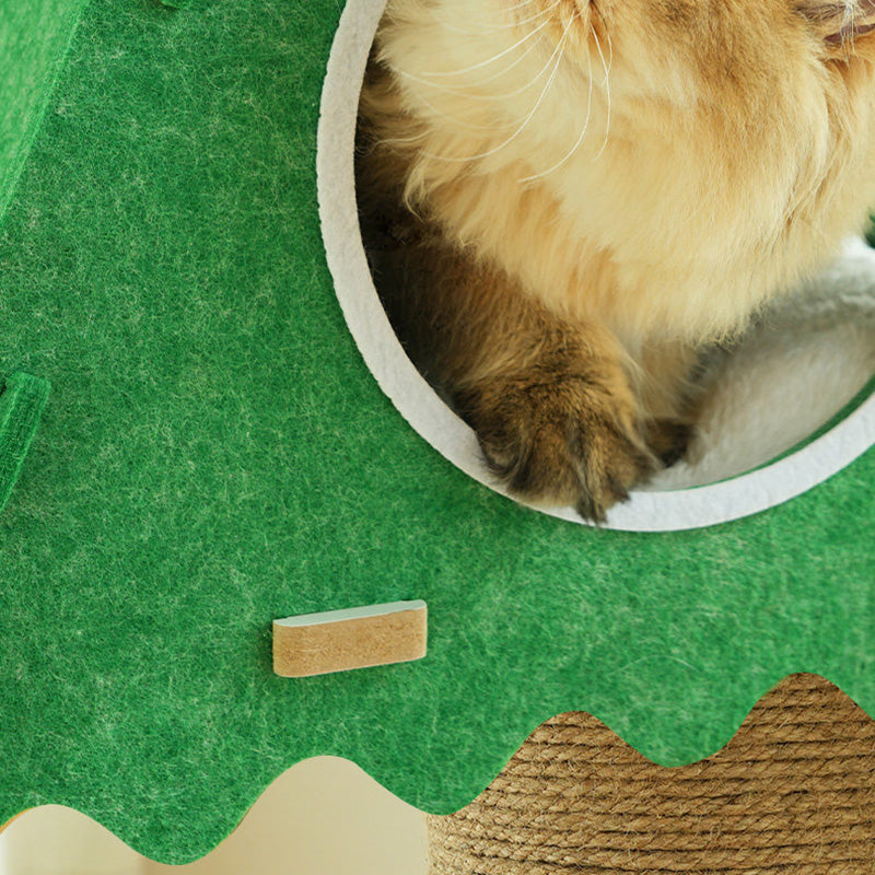 Engineered for the high-energy needs of the modern indoor feline, the Evergreen Grotto prioritizes structural safety and feline wellness. The structural pillars are fully wrapped in industrial-grade natural sisal, providing a rugged, scratch-resistant surface that satisfies primal grooming instincts while safeguarding your designer furniture. Built on a reinforced, wobble-free foundation, this "Rock-Solid" tower comfortably supports cats up to 10kg (22 lbs), making it a secure haven for larger breeds and active jumpers. Swathed in hypoallergenic, cloud-touch plush, every tier offers a velvety-soft, orthopedic retreat for deep sleep. This is the premier choice for shoppers seeking aesthetic Christmas tree cat furniture, modern triangular cat towers, space-saving holiday pet condos, and durable green scratching posts.
