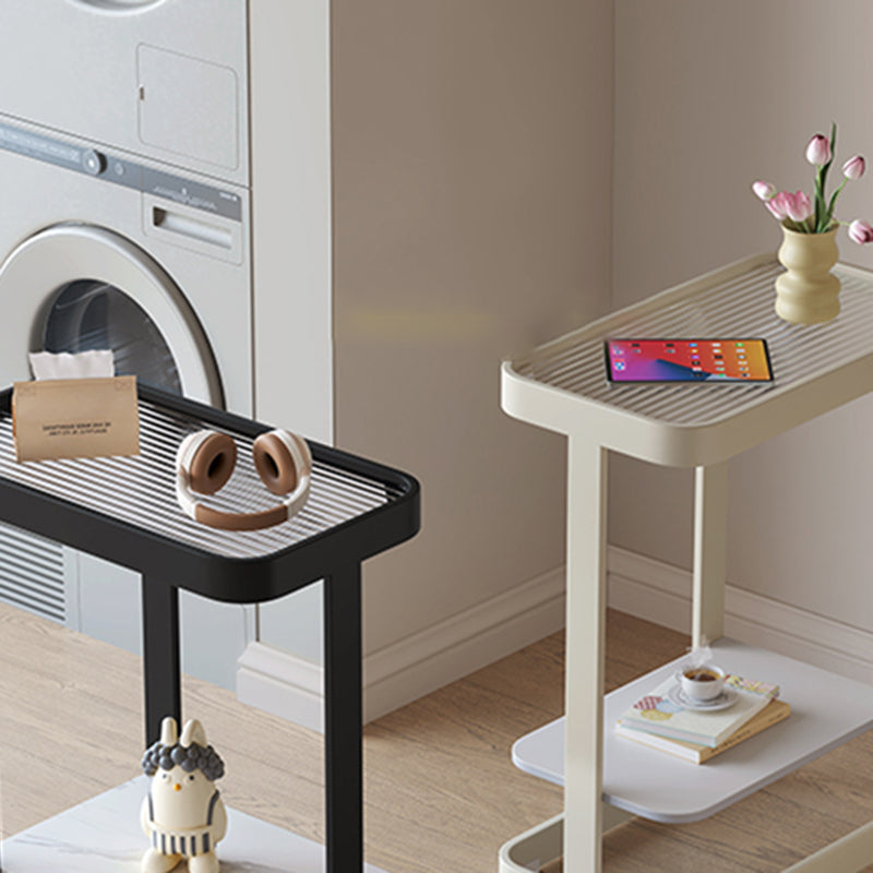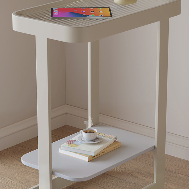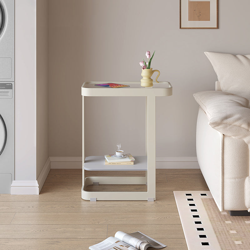 Add a dash of industrial charm to your space with this movable rectangular end table---boasting a rust-proof, corrosion-resistant carbon steel frame and durable rock slab & glass tops that wipe clean in seconds! With 2 handy tiers for grab-and-go snacks or bedside essentials, it comes in creamy white and sleek black, seamlessly elevating living rooms and bedrooms with a perfect blend of effortless storage and contemporary elegance.