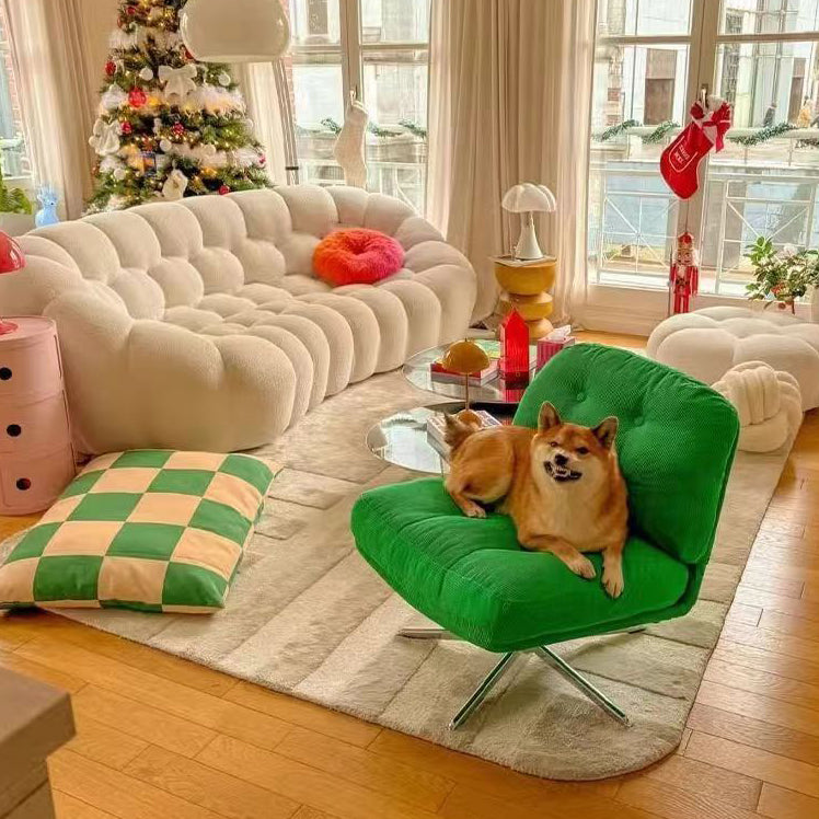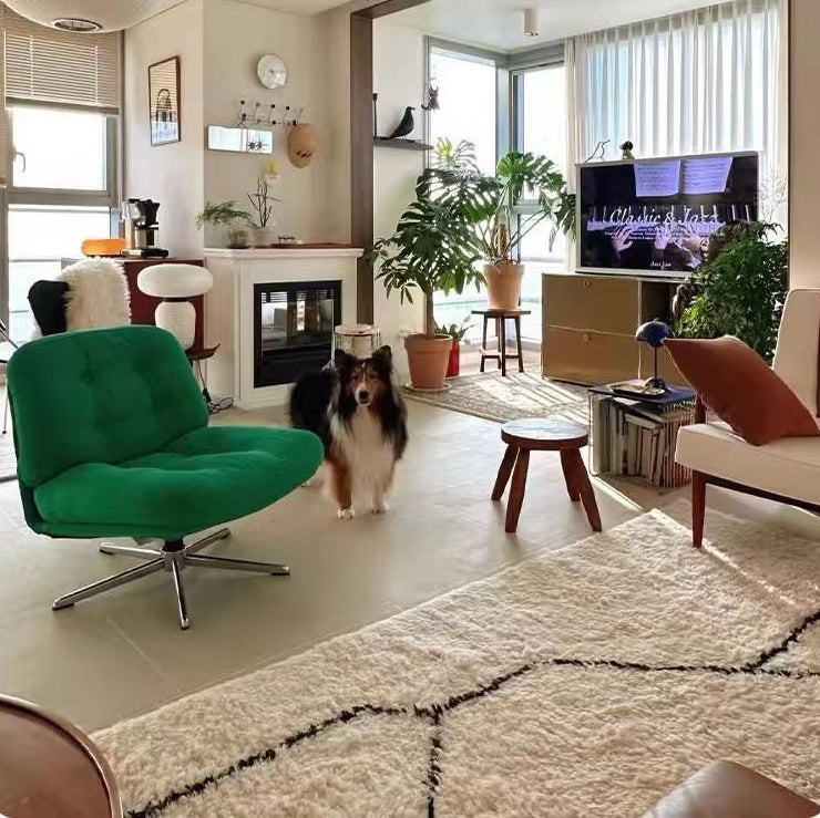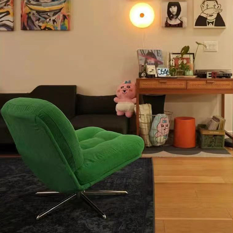 Experience cozy, modern comfort with this Contemporary Nordic Swivel Lounge Chair. Upholstered in soft corduroy and filled with cloud-like cotton, it offers exceptional plush seating. The chair is anchored by a sturdy carbon steel 5-star base and features a full 360° rotating design, seamlessly blending robust engineering with modern, inviting style.