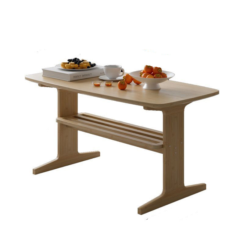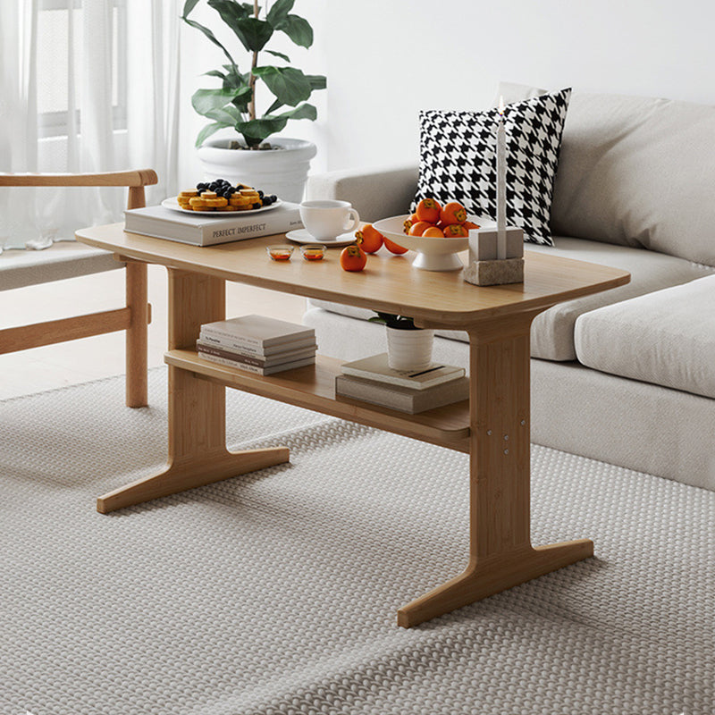 This modern minimalist nan bamboo coffee table features a T-shaped rounded rectangular design with a 2-tier structure, making it ideal for small living spaces and everyday dining use. Finished in natural or tea tone, it is designed with soft rounded corners and T-style legs for evenly distributed weight and enhanced stability, blending Japanese-inspired simplicity with practical functionality.