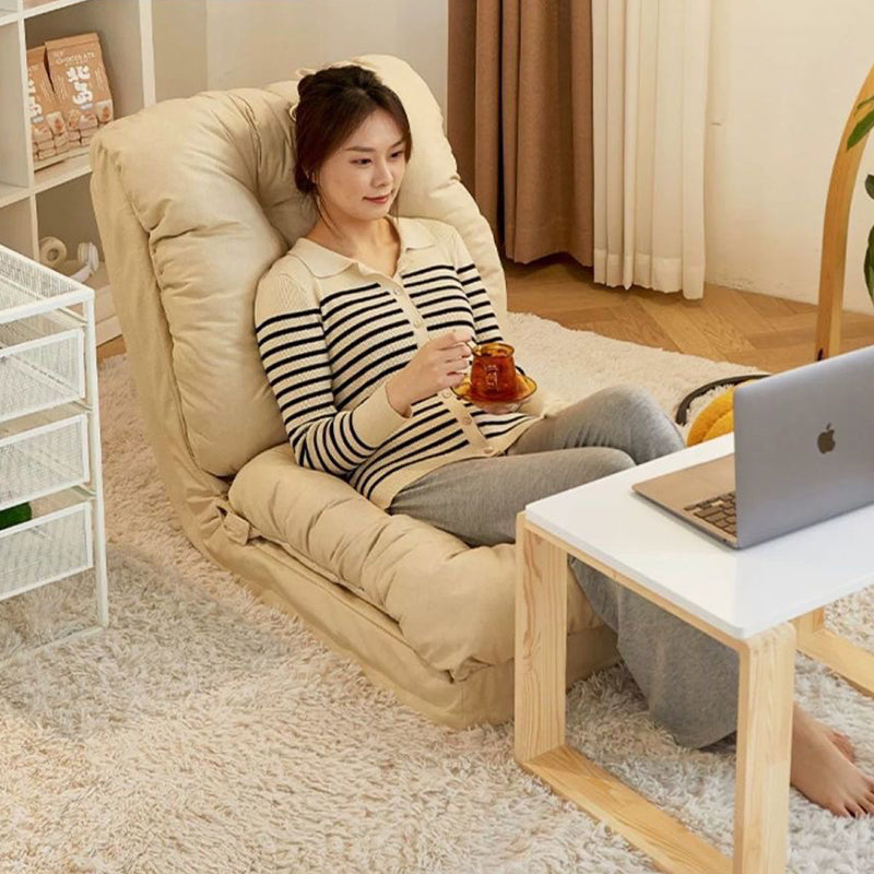 Relax in comfort with this modern minimalist lounge chair made from bubble fabric, iron, and soft cotton filling. Featuring a foldable rectangular design with an adjustable backrest, this cozy floor sofa comes in beige, dark gray, light gray, and orange—perfect for living rooms, balconies, or reading corners.