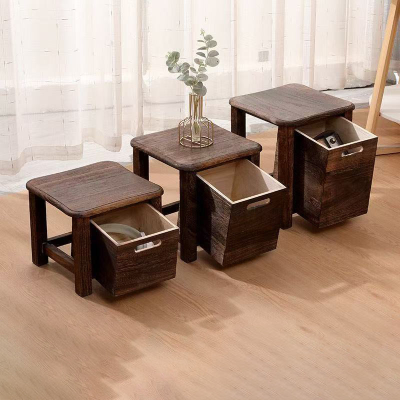This modern minimalist storage low stool, made from durable paulownia wood, offers a practical and stylish solution for your living room. Available in wood color and carbonized color, it features a spacious drawer for storage and a stackable design to save space. The sturdy, thickened wood frame ensures durability, and the unique wood grain on each piece adds a one-of-a-kind touch. With rounded corners, a non-toxic finish, and zero formaldehyde, this ottoman is both safe and functional for any room, perfect for storing toys, and more.