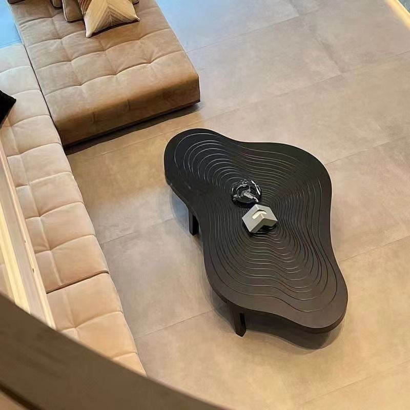 Add artistic elegance to your living room with this modern Nordic coffee table crafted from solid wood. Featuring a unique irregular wave pattern and sturdy one-tier design in sleek black, this table blends durability and style—perfect for contemporary homes seeking a statement piece.