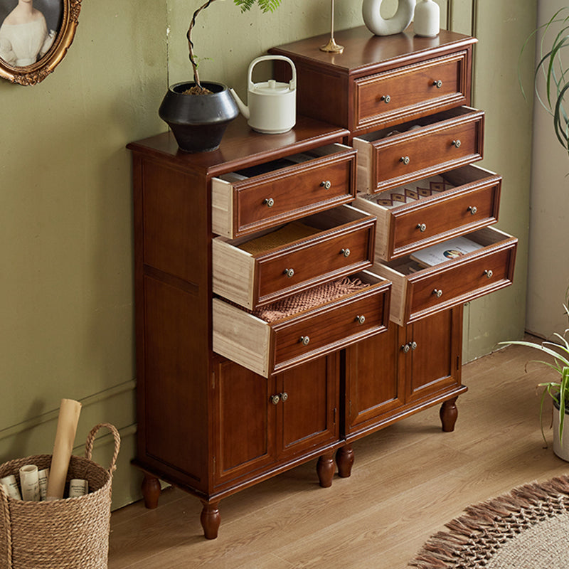 This modern minimalist solid wood storage cabinet combines functionality with timeless style. Featuring 3/4 drawers and a door, it offers ample space for organizing essentials in your living room. Available in light walnut, walnut, coffee brown, and ivory white finishes, the sturdy wood construction adds warmth and durability to any home interior. Perfect for creating a clean and organized living space.