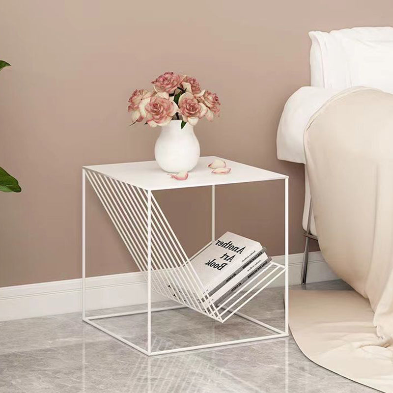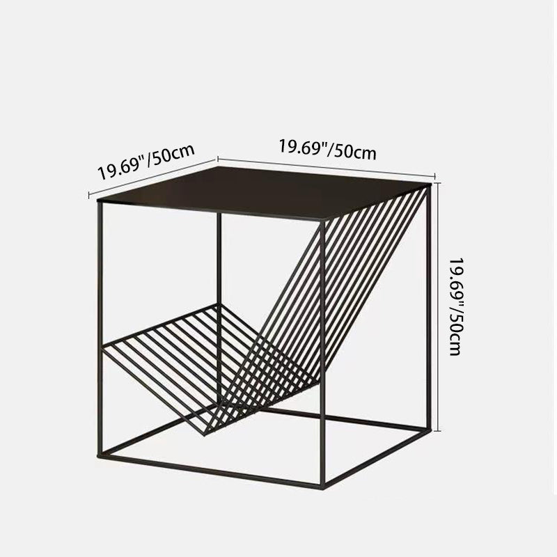 Modern Minimalist Square Iron Side Table 2-Tier For Living Room