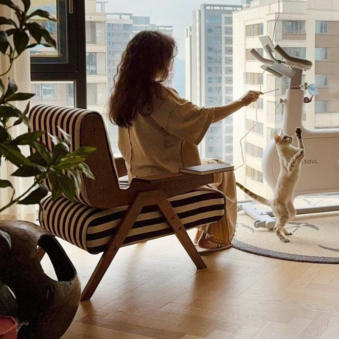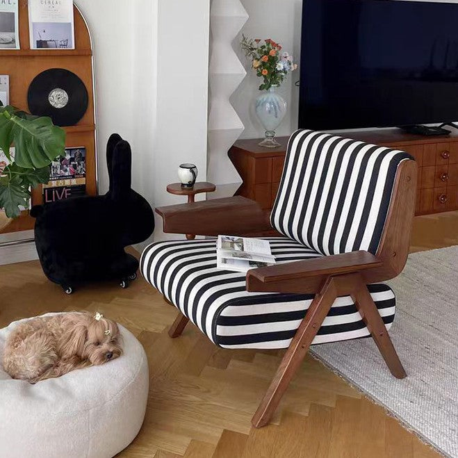 Designed for exceptional comfort, the chair boasts a generously wide cushioned seat and an ergonomic backrest with integrated armrests for relaxing support. Available in classic black and warm walnut finishes, this versatile armchair is the perfect addition to create a chic focal point in your living room, a cozy balcony retreat, or a dedicated reading corner.