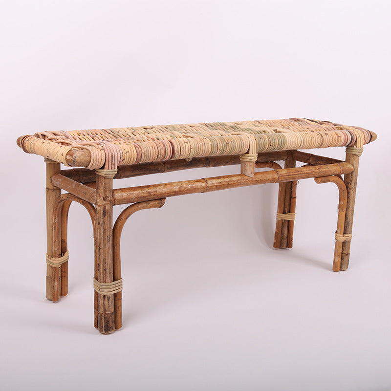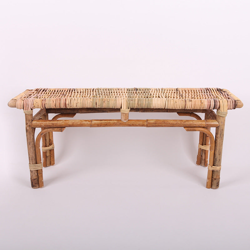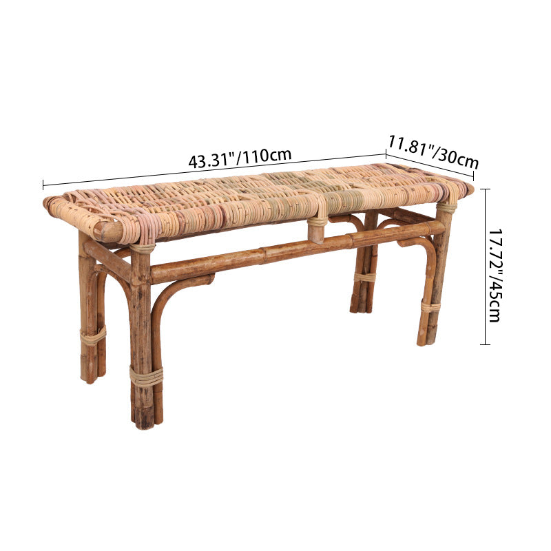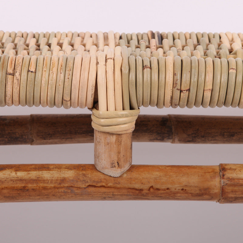 Modern Minimalist Bamboo Rattan Bench Solid Bamboo Frame & Woven Rattan: Sturdy, Lightweight, Eco-Friendly & Breathable Seating For Patio And Balcony