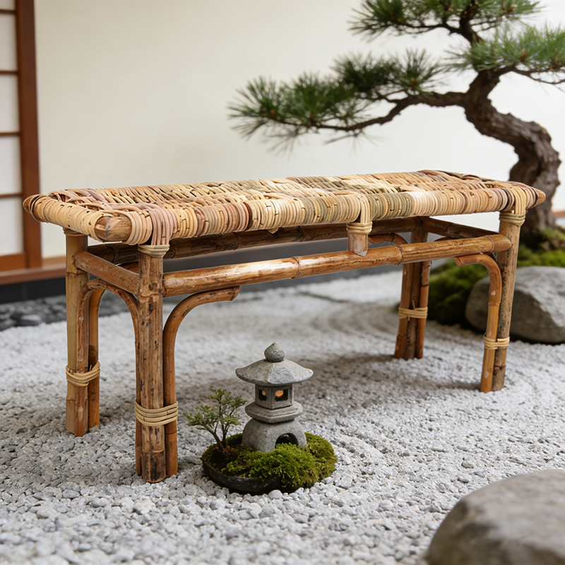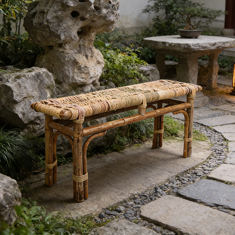 This Bamboo Rattan Bench is handcrafted from natural bamboo and rattan, showcasing organic textures and warm earthy tones. Each piece reflects traditional craftsmanship, making it a perfect choice for those who appreciate sustainable, handmade furniture and a nature-inspired lifestyle.