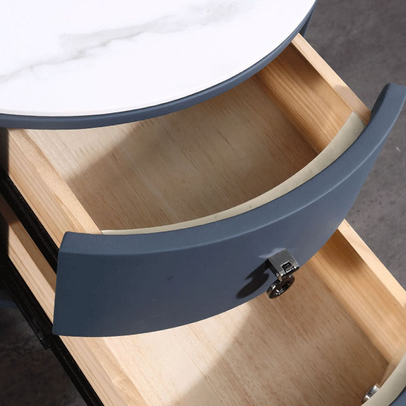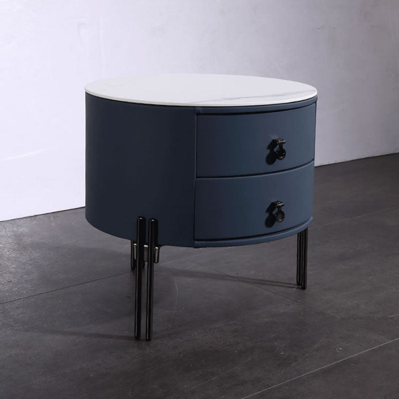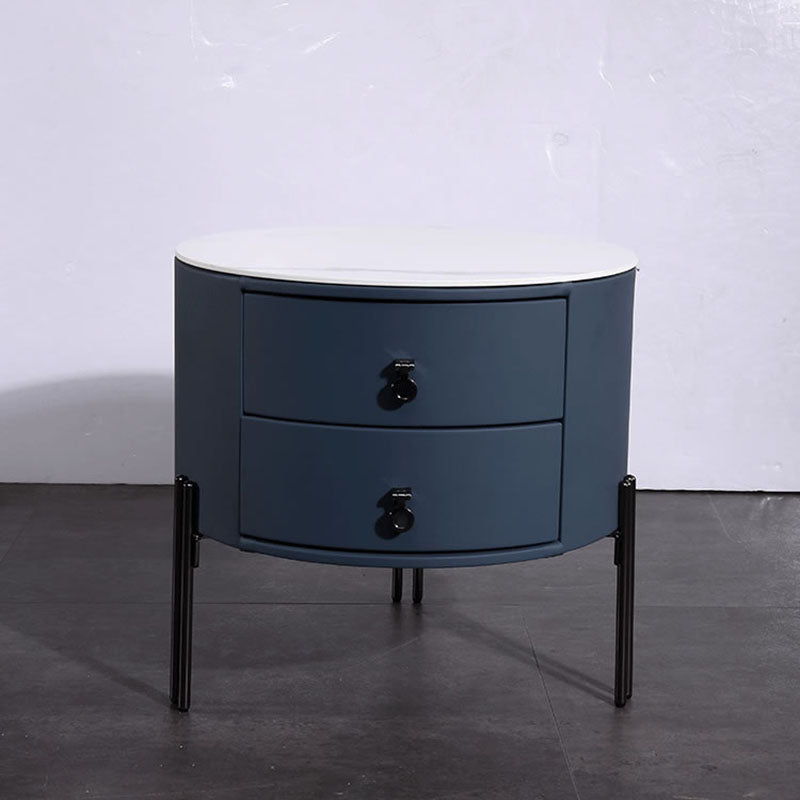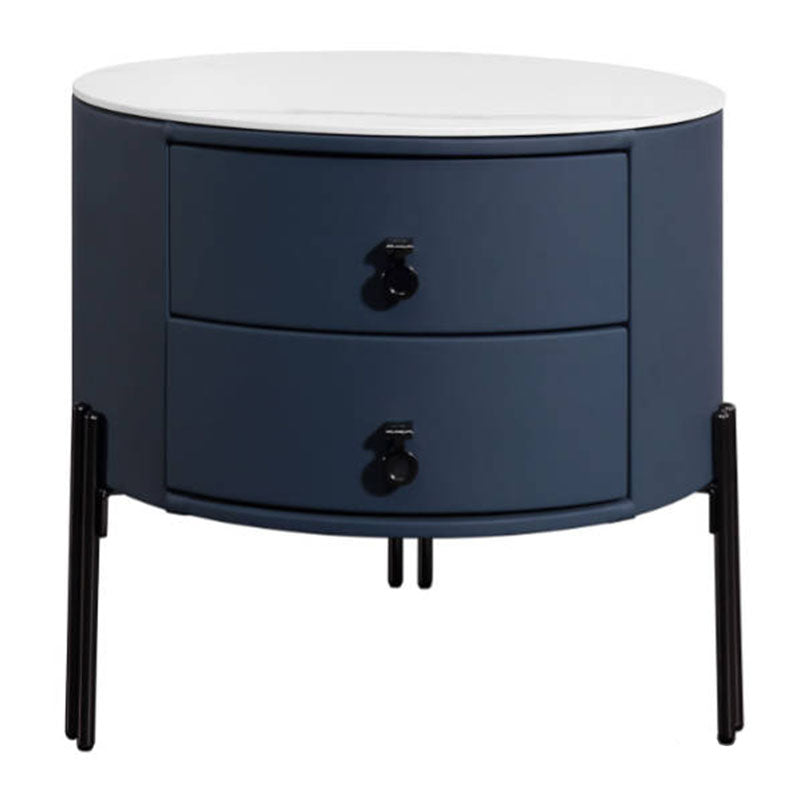 Contemporary Sintered Stone Top Metal Legs Nightstand - 2 Drawers Bedside Cabinet For Bedroom