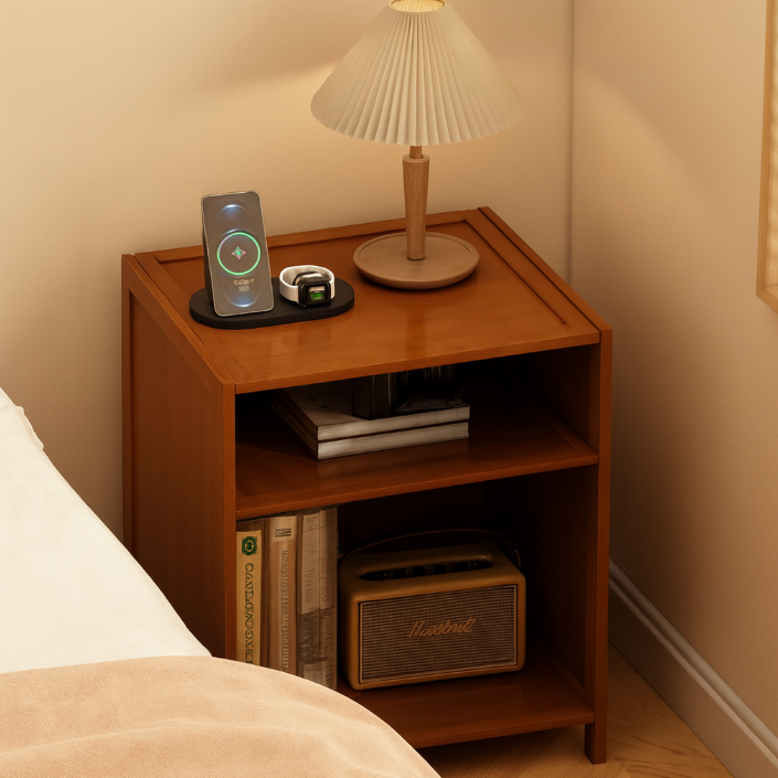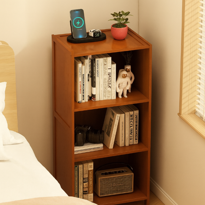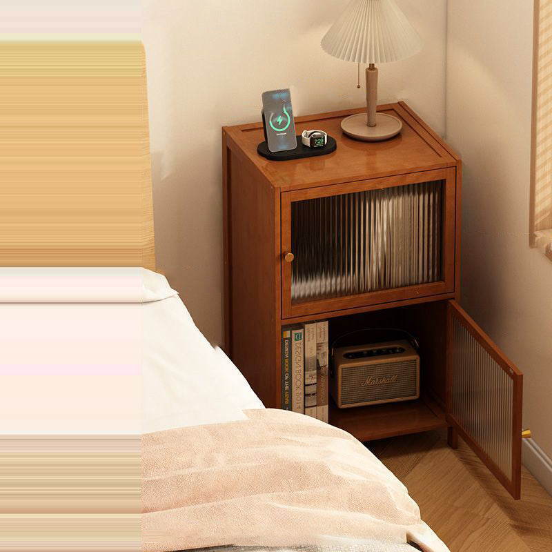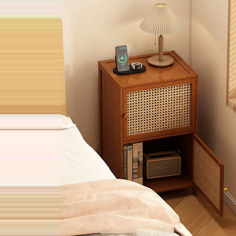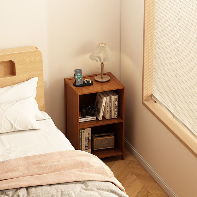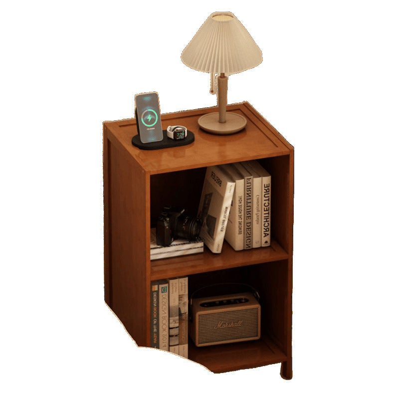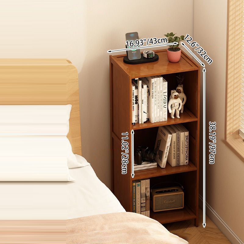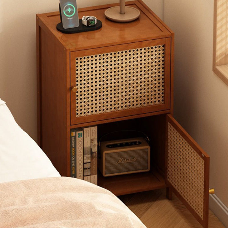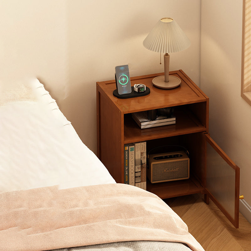 This modern minimalist storage cabinet features a rectangular bamboo frame, MDF full name: Medium-Density Fiberboard, acrylic panels, and rattan accents, offering 1/2/3-cabinets cabinet-style storage in a warm vintage brown tone. Its wide tabletop, three-sided sealed design, and versatile layered structure provide practical bedside organization ideal for any bedroom layout.