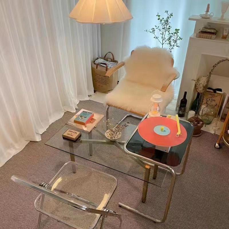 This modern minimalist end table combines sleek iron framing with durable tempered glass in a refined rectangular design. Available in clear, smoked tea, or black finishes, it offers strong load-bearing stability and a light, airy look—perfect as a sofa side table, accent piece, or coffee corner in contemporary living rooms.