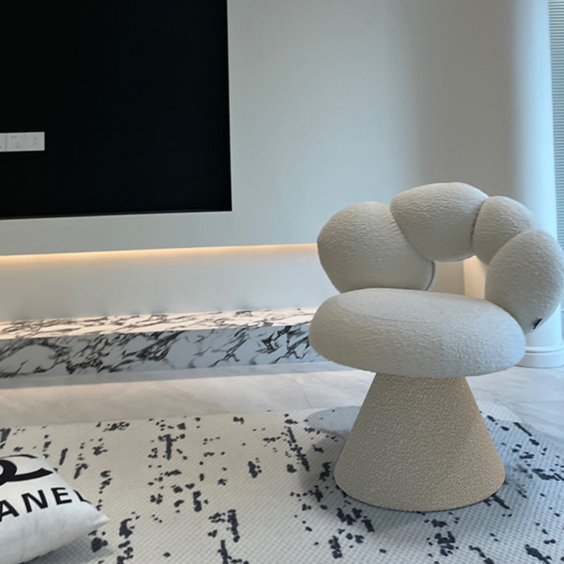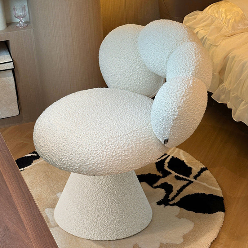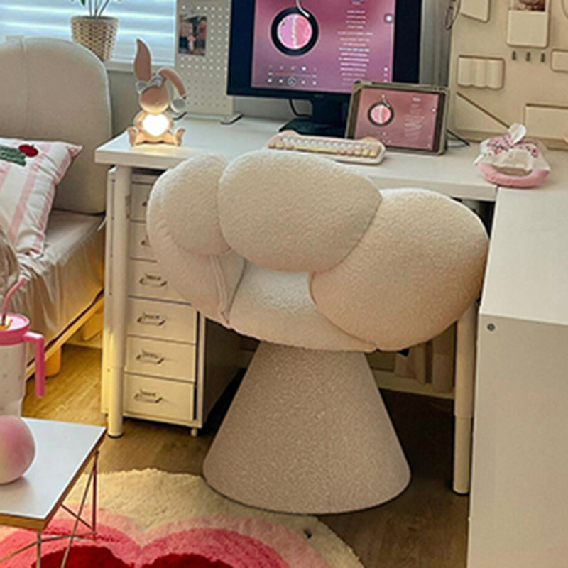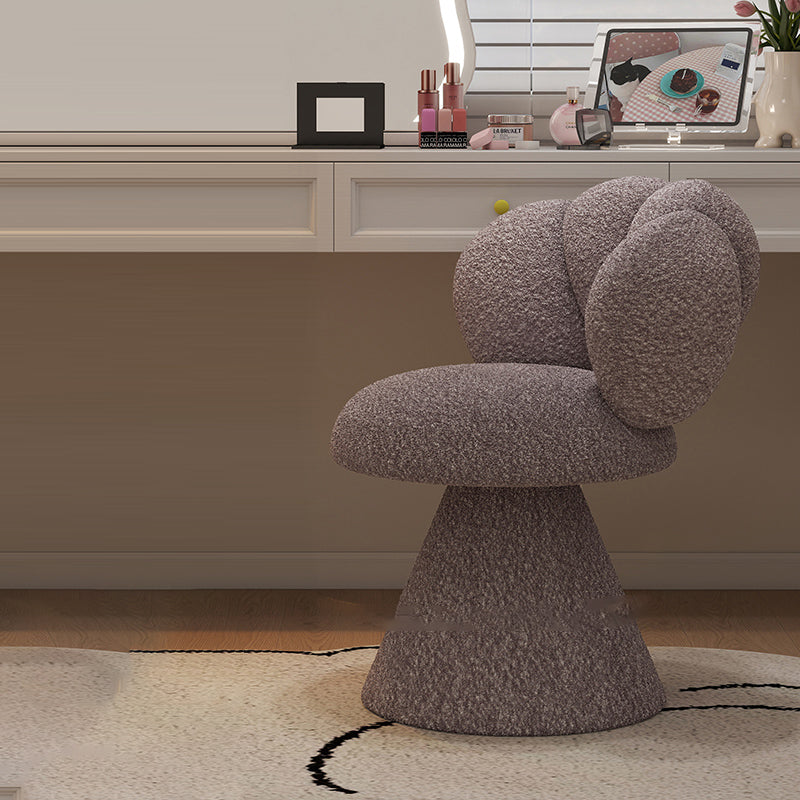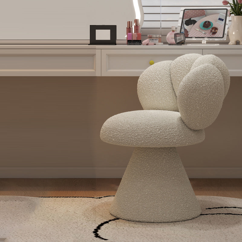This sherpa petal-shaped swivel vanity stool is designed for modern bedrooms, featuring a 360° rotating seat and a curved backrest that supports your body naturally.