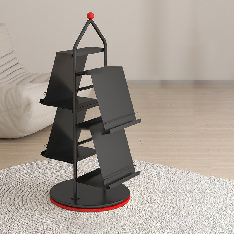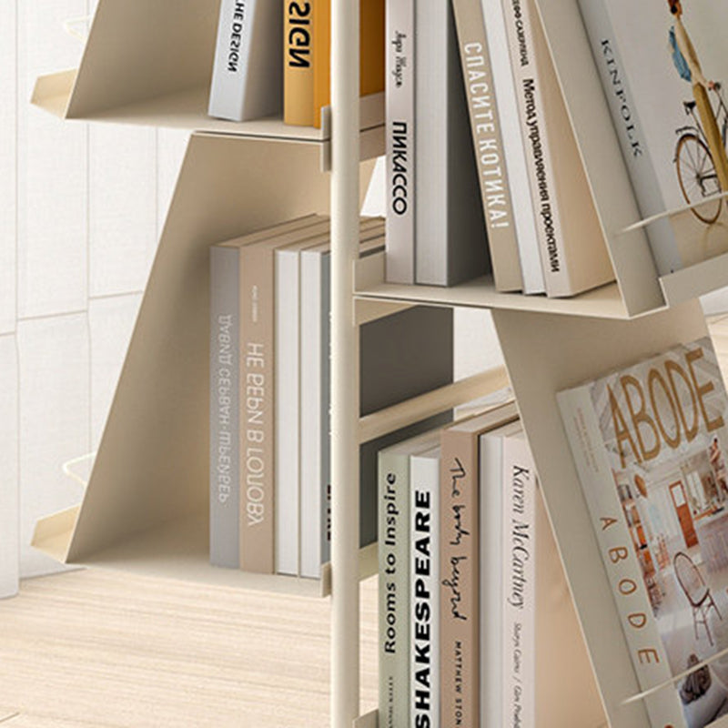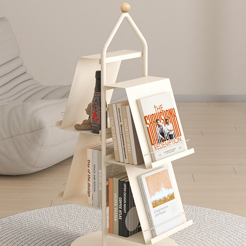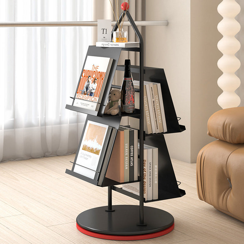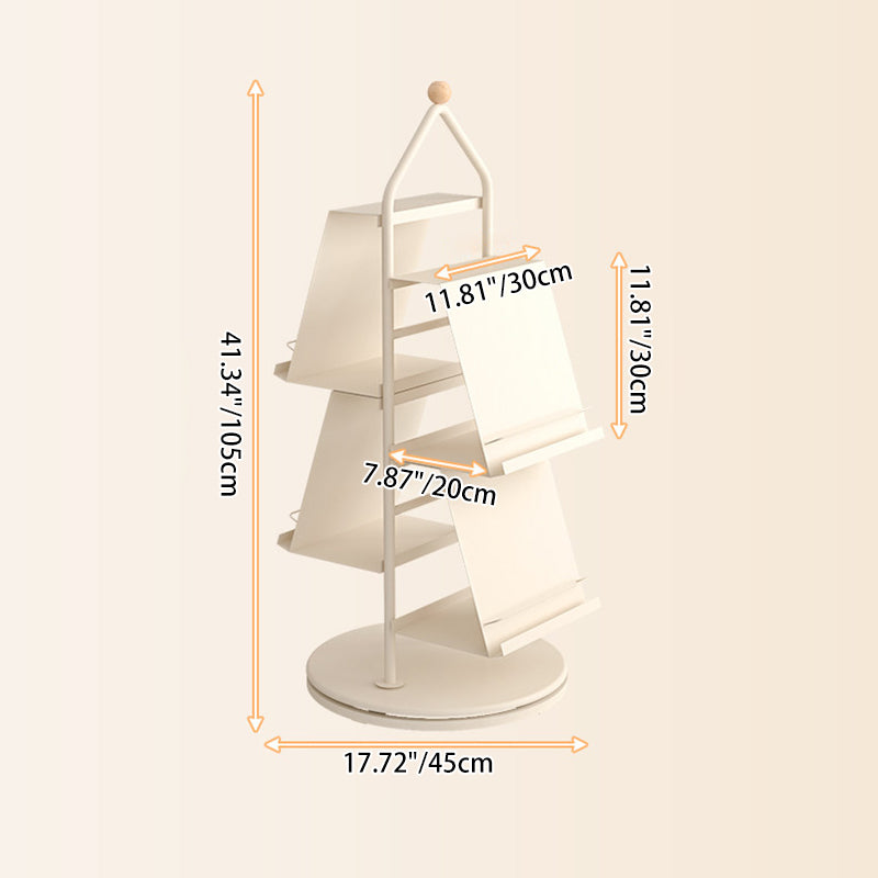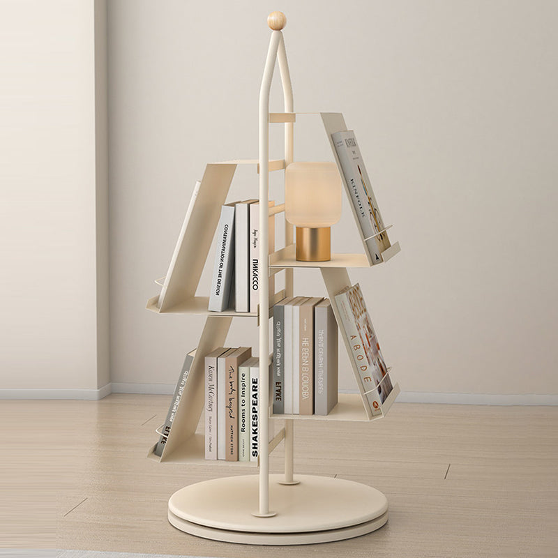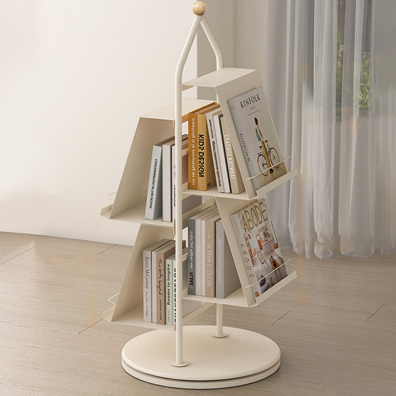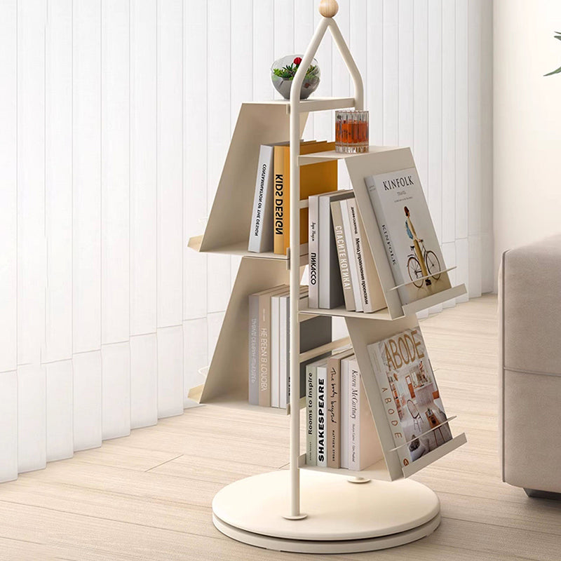 This space-saving rotatable 4-tier bookshelf boasts a contemporary industrial style and durable carbon steel build that resists rust and corrosion. Available in cream white and black, its staggered storage design and 360° rotation maximize storage while minimizing footprint, making it ideal for cozy living rooms, bedrooms, and functional studies.