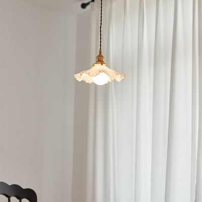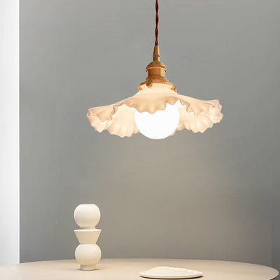 Contemporary Nordic Flower Copper Glass 1-Light Pendant Light For Living Room