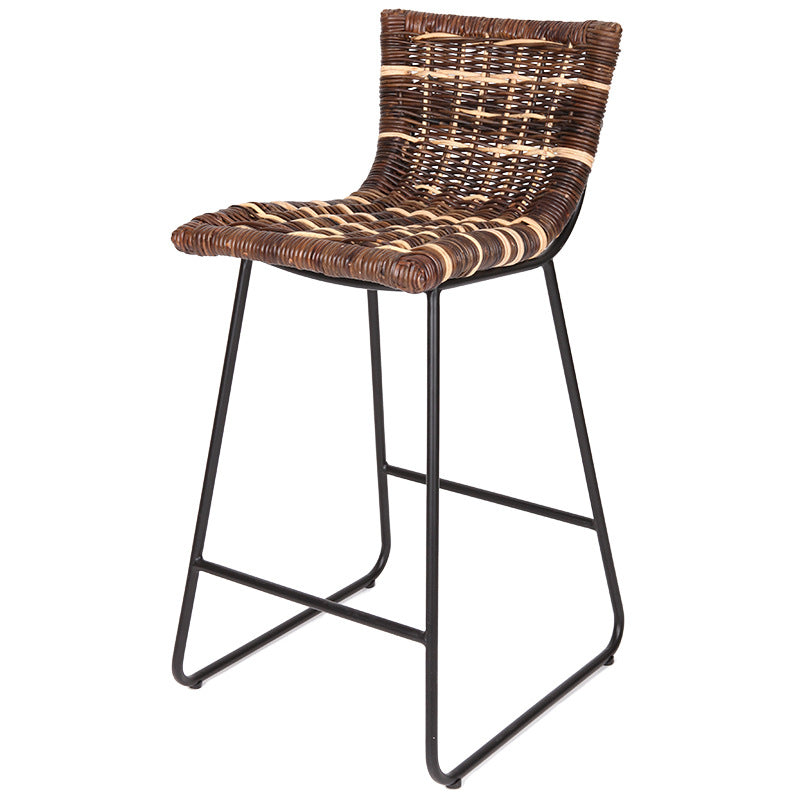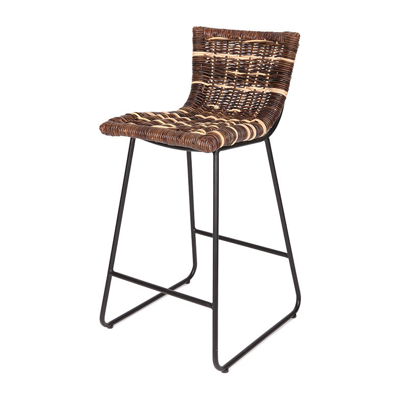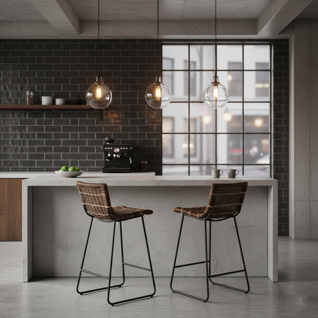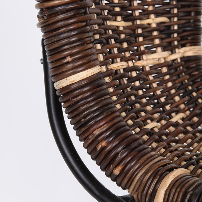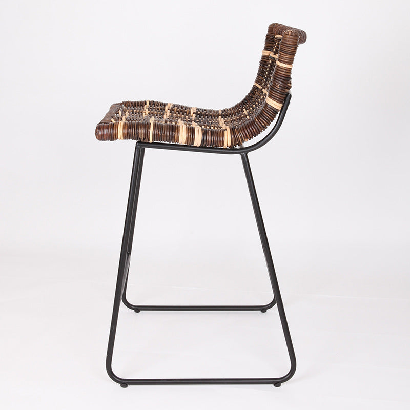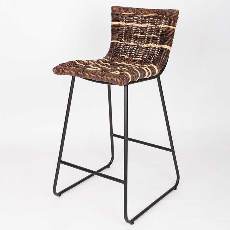 This farmhouse bar stool is a study in gentle contrast: its body, hand-woven from Indonesian rattan, is soft to the touch---light, pliable, yet stubbornly resistant to cracking, even after years of use. Its legs, sharp black iron, cut a sturdy line: they hold fast when you lean in to pass a plate, when kids perch on the edge mid-snack, turning "flimsy wicker" into "reliable core." The rattan does more than look good: it drinks in kitchen humidity, keeping the seat cool when the stove's on and the air thickens. Brown rattan and black metal blend like wheat fields and storm clouds---warm, grounded, and unapologetically farmhouse.