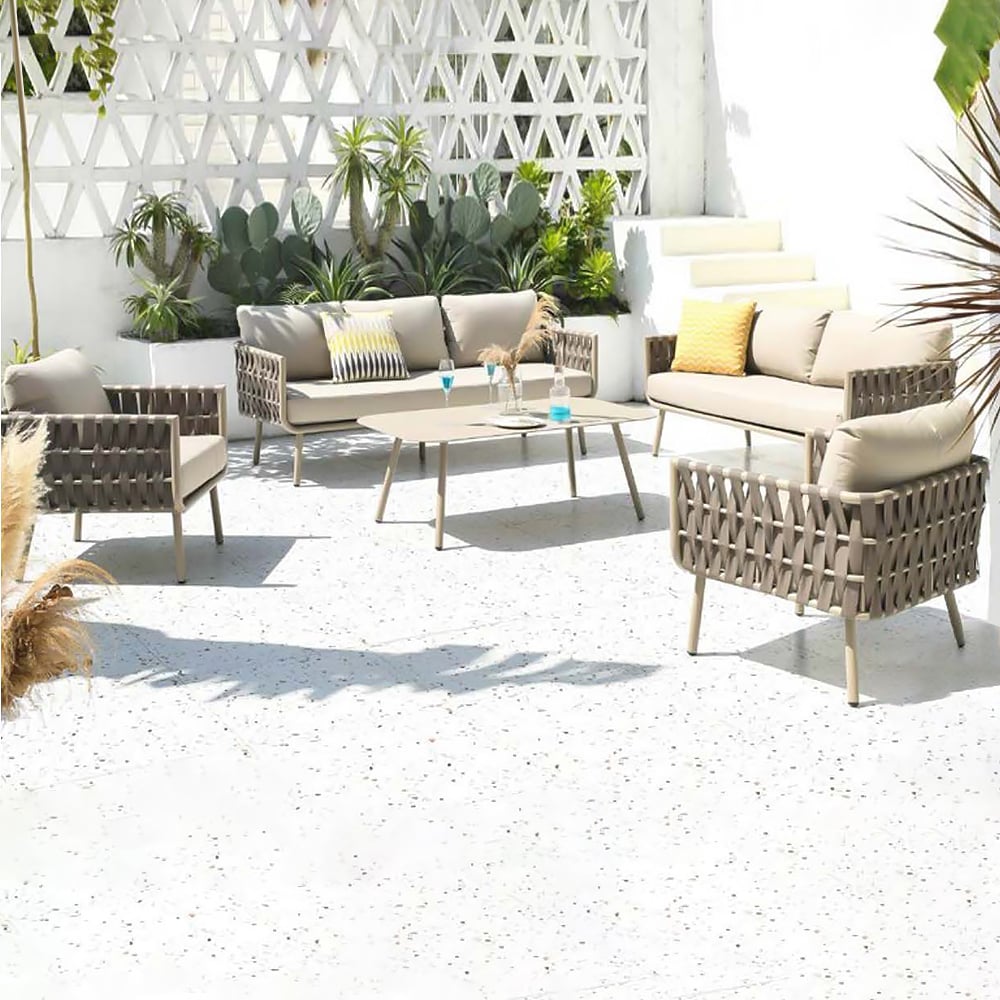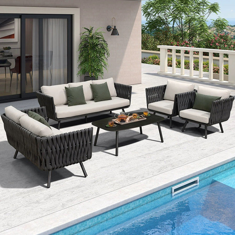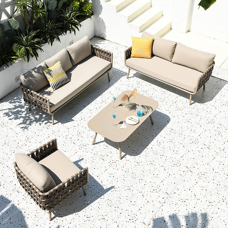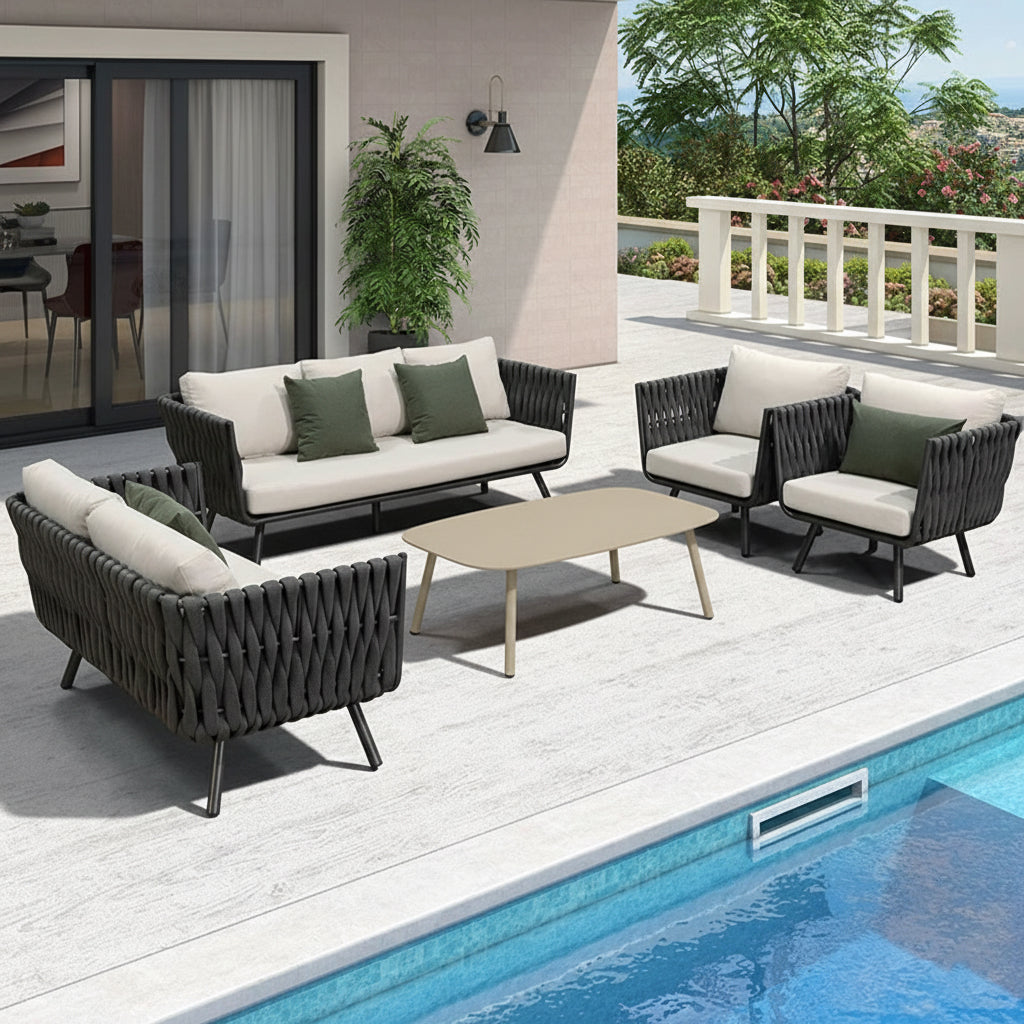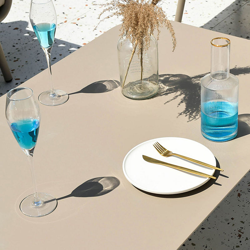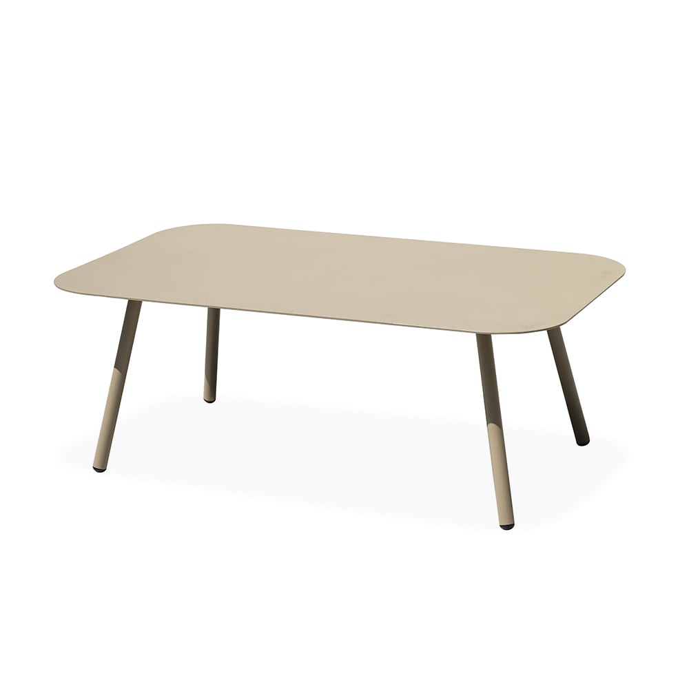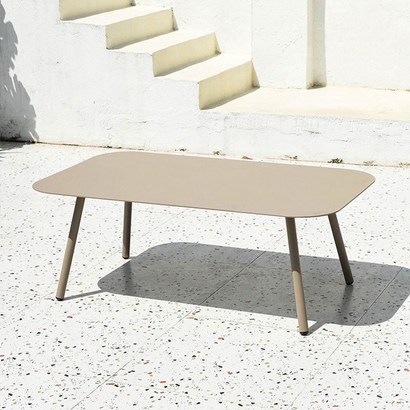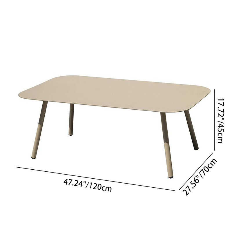 This outdoor coffee table features a modern minimalist design, crafted from durable aluminum for solid support. The four aluminum legs ensure long-lasting stability, while the rounded corners provide added safety. The surface is coated with high-temperature outdoor sand-texture powder for enhanced waterproof, rust, and corrosion resistance. Perfect for gardens, patios, or balconies, it adds a modern touch to your outdoor space.