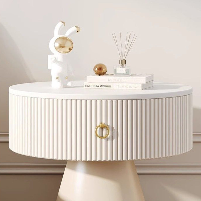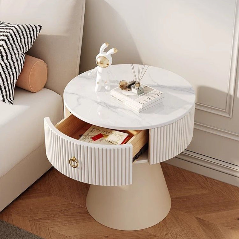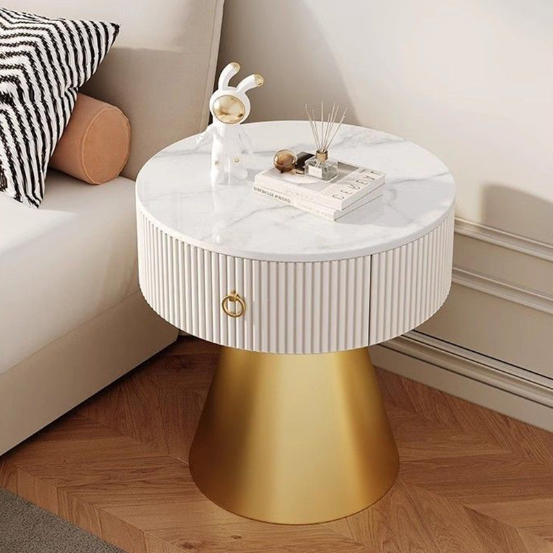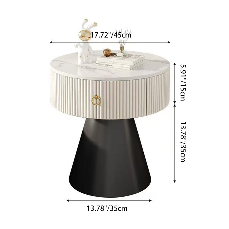 This modern cone-shaped nightstand combines engineered wood, sintered stone, and durable PP to create a stylish bedside storage solution with a smooth single drawer. Available in white, black, and gold, it features a heat-resistant, scratch-resistant top, rounded edges for safety, a stable load-bearing structure, and an easy-to-clean surface ideal for contemporary bedroom spaces.