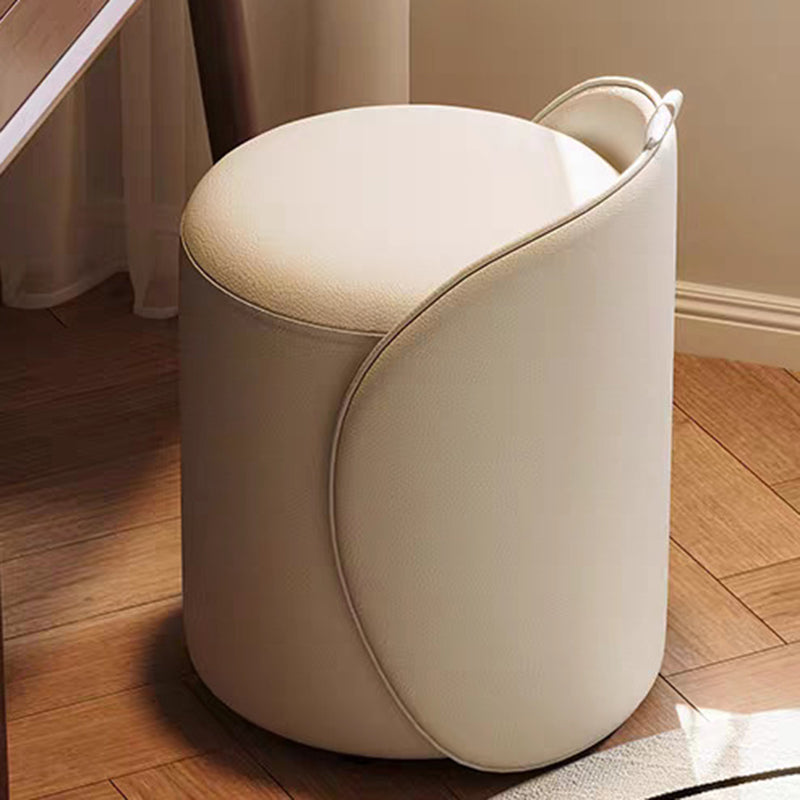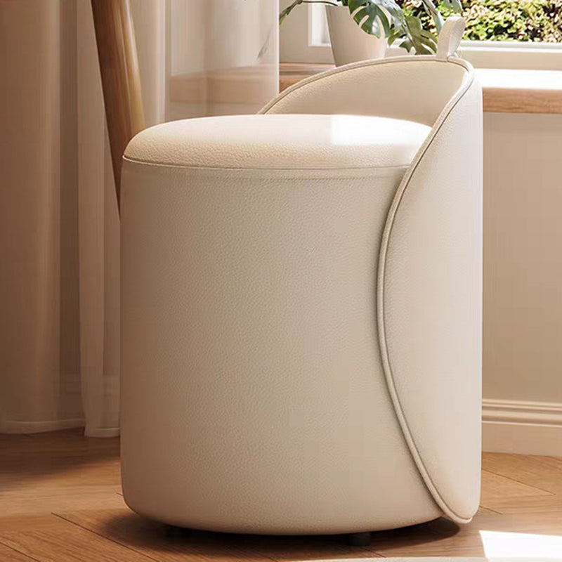 This modern minimalist vanity chair brings a touch of refined sophistication to your dressing area. Wrapped in soft PU leather and cushioned with high-resilience foam, it offers a plush seating experience supported by a sturdy solid wood base. The elegant off-white cylindrical silhouette is finished with smooth rounded edges and a non-slip structure, ensuring both safety and lasting stability. It is the perfect centerpiece for a serene bedroom vanity or a dedicated makeup suite.