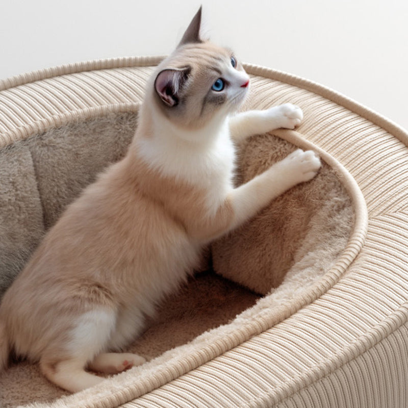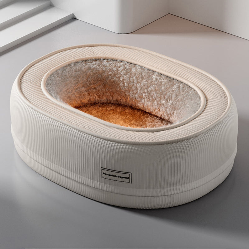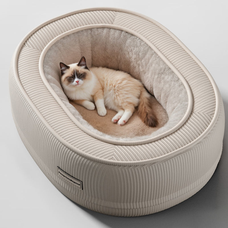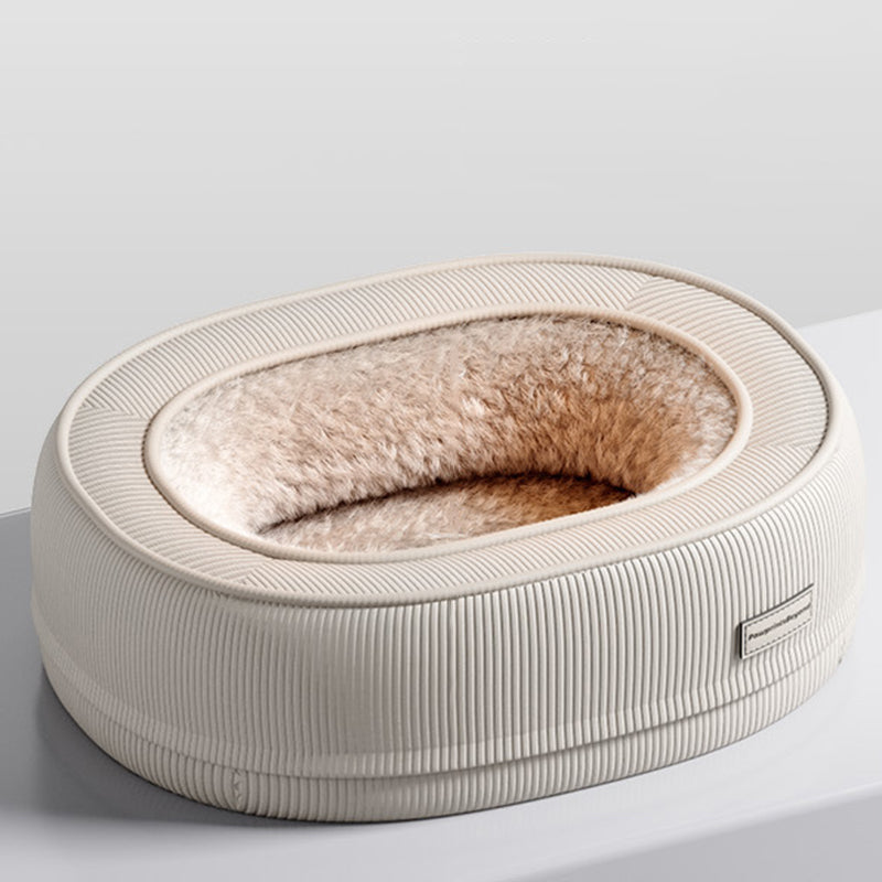 Exuding modern simplicity, this minimalist pet bed is designed to provide your companions with ultimate year-round comfort. The exterior is wrapped in a soft, textured corduroy, while the interior is generously packed with thick PP cotton to ensure a supportive, breathable resting space that resists flattening. Its spacious oval silhouette offers plenty of room for cats and medium-sized dogs to stretch out. Finished in a warm beige tone, this elegant bed blends effortlessly into the decor of any living room or bedroom.