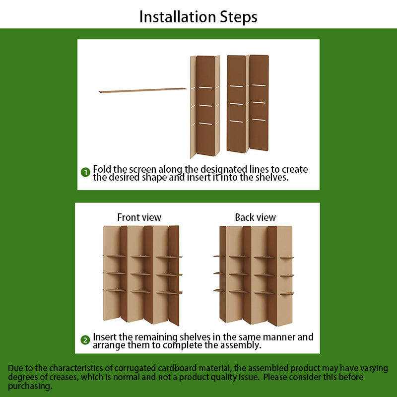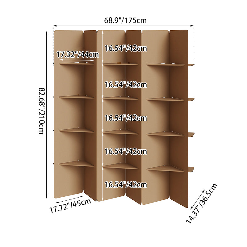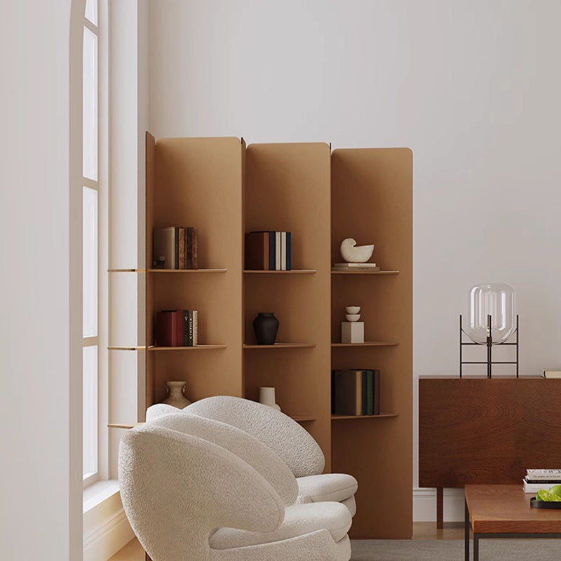 This modern minimalist room divider elevates interior spaces with its architectural, multi-tiered design. Crafted from high-hardness corrugated cardboard, it balances a warm, earthy aesthetic with exceptional durability and crack resistance. Available in 3 or 4-tier configurations, the unit functions as both a stylish partition and a versatile display for curated objects. Its foldable construction ensures a seamless setup, making it an ideal choice for refined homes, creative studios, or contemporary retail environments.