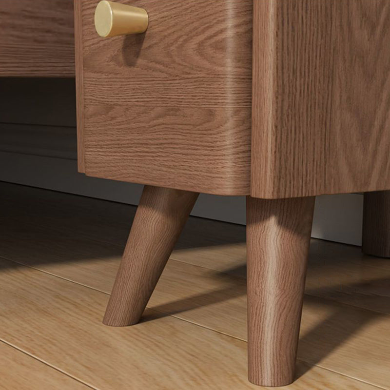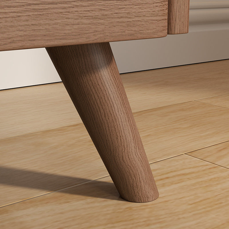 Crafted from solid wood, this nightstand ensures strong load-bearing stability. It includes two convenient drawers and practical design elements like rounded anti-bump corners and elevated legs for easy floor cleaning.