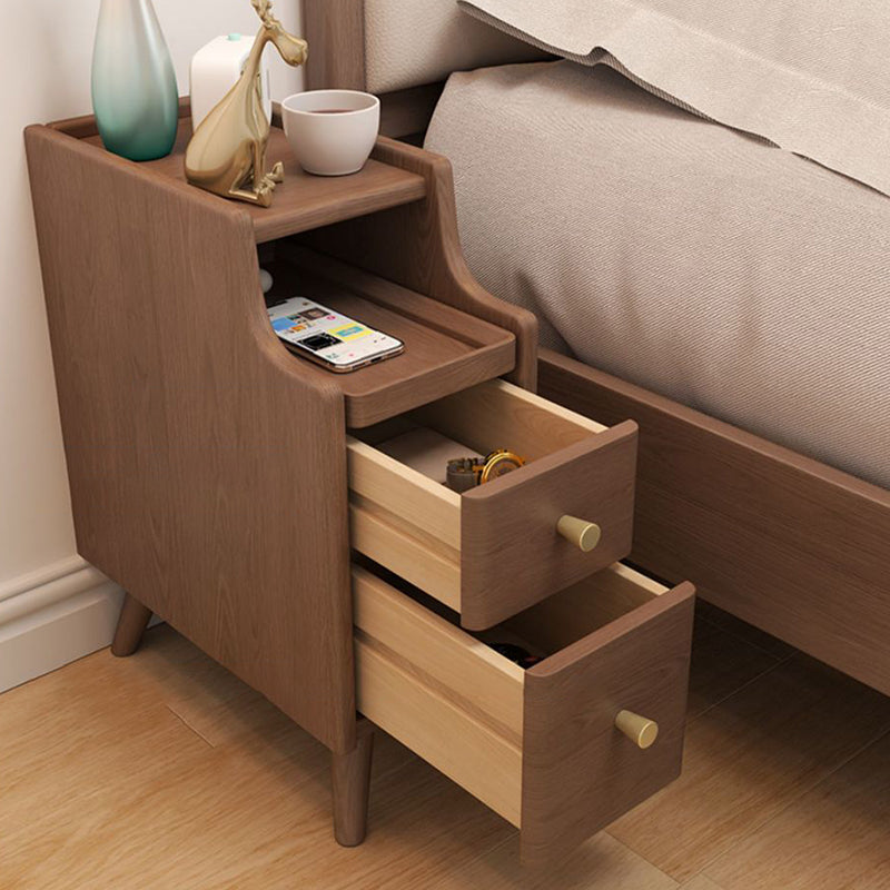 Maximize space without sacrificing style with this modern minimalist solid wood nightstand. It features an ultra-slim rectangular profile and a smart two-tier layout, designed to provide highly efficient bedside storage for small bedrooms.