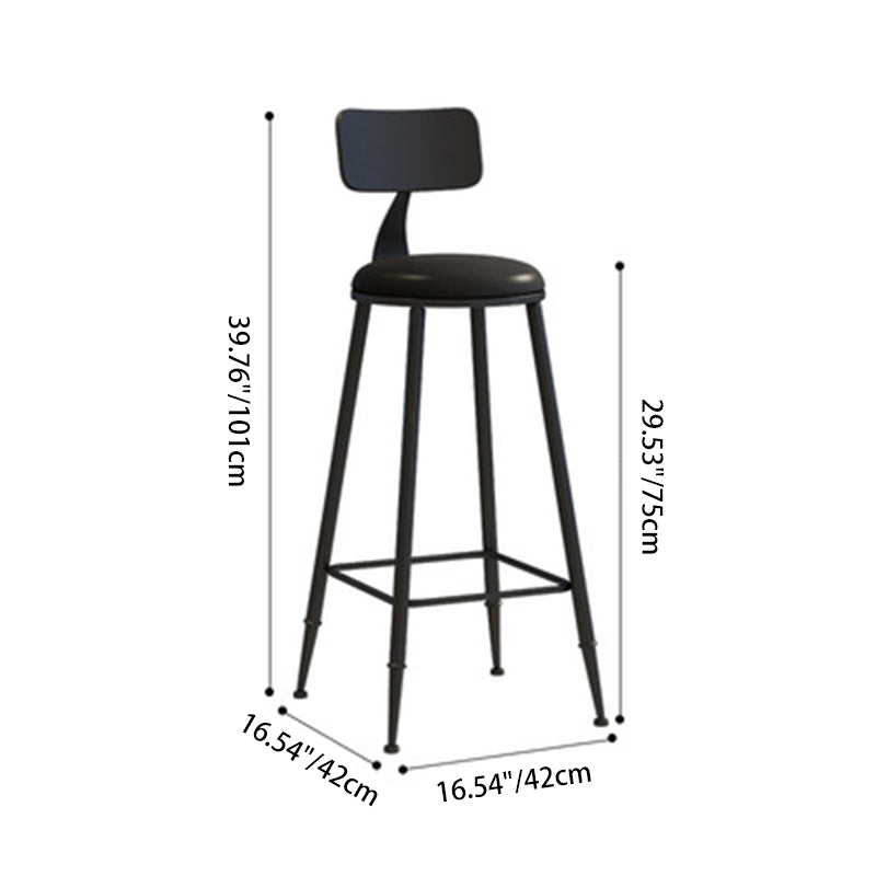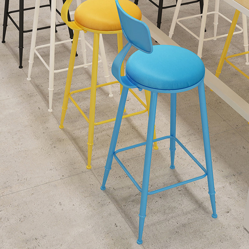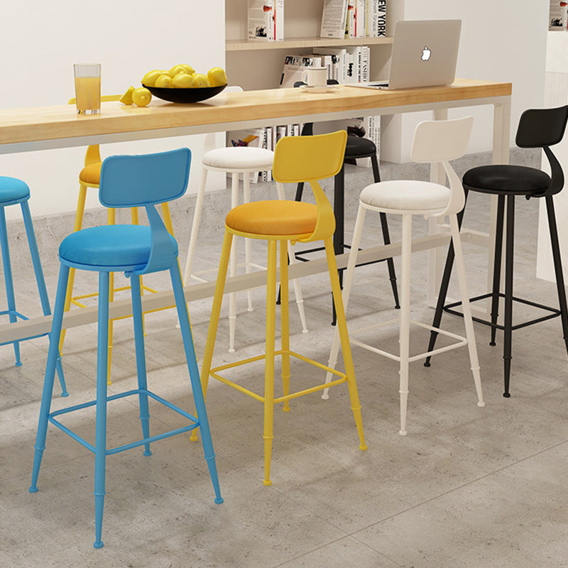Modern Minimalist Round PU Leather Galvanized Steel Bar Stool Backrest Armless For Dining Room & Kitchen