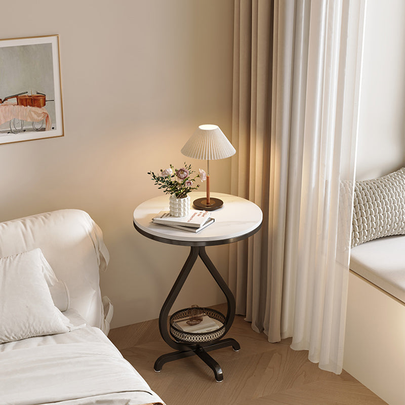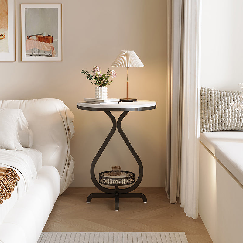 This modern minimalist round side table features a premium sintered stone top and a sturdy iron frame, offering a durable and stylish solution for everyday use. Designed with a practical 2-tier storage structure, adjustable leveling feet, and available in black or white, it’s perfect as a sofa side table or bedside accent for living rooms and bedrooms.