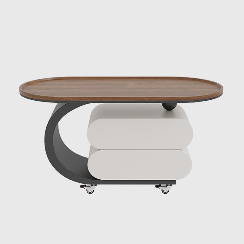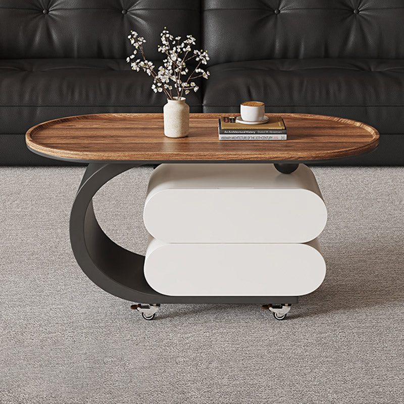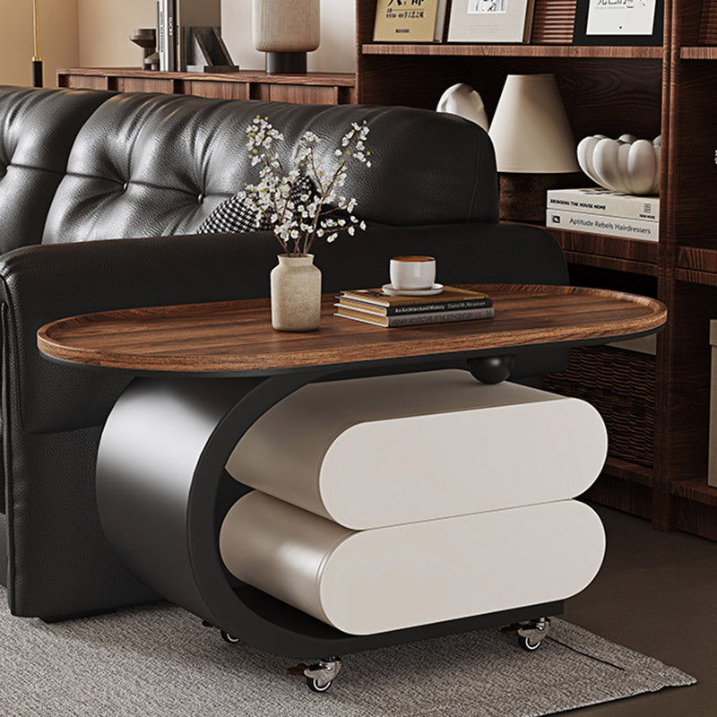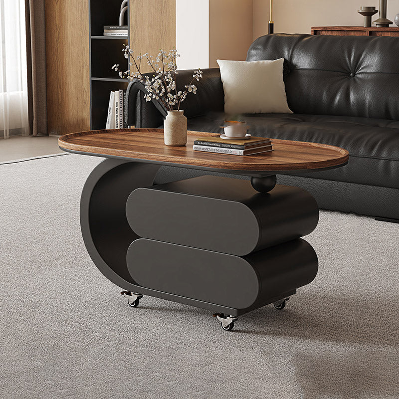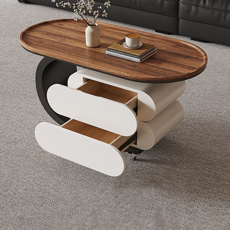 Elevate your living room with this modern minimalist oval coffee table, crafted from solid wood, MDF, and a carbon steel base. Featuring 2 drawers and a movable design, it’s perfect for small spaces and comes in black, white, or walnut to match any décor.